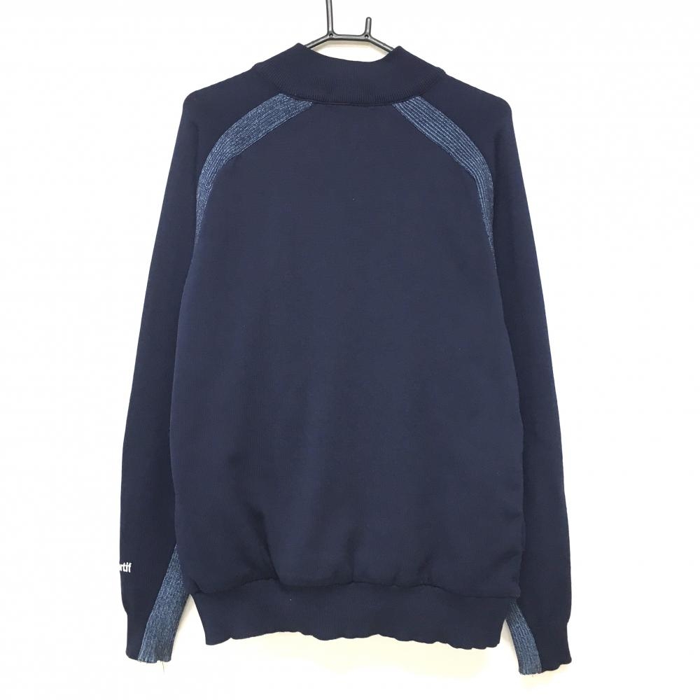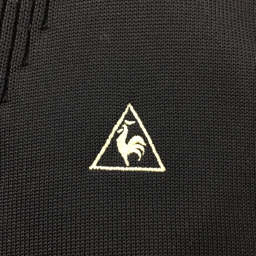 【美品】ルコックゴルフ 中綿ニットジャケット ネイビー×ライトブルー 背面内側中綿 メンズ L ゴルフウェア le coq sportif