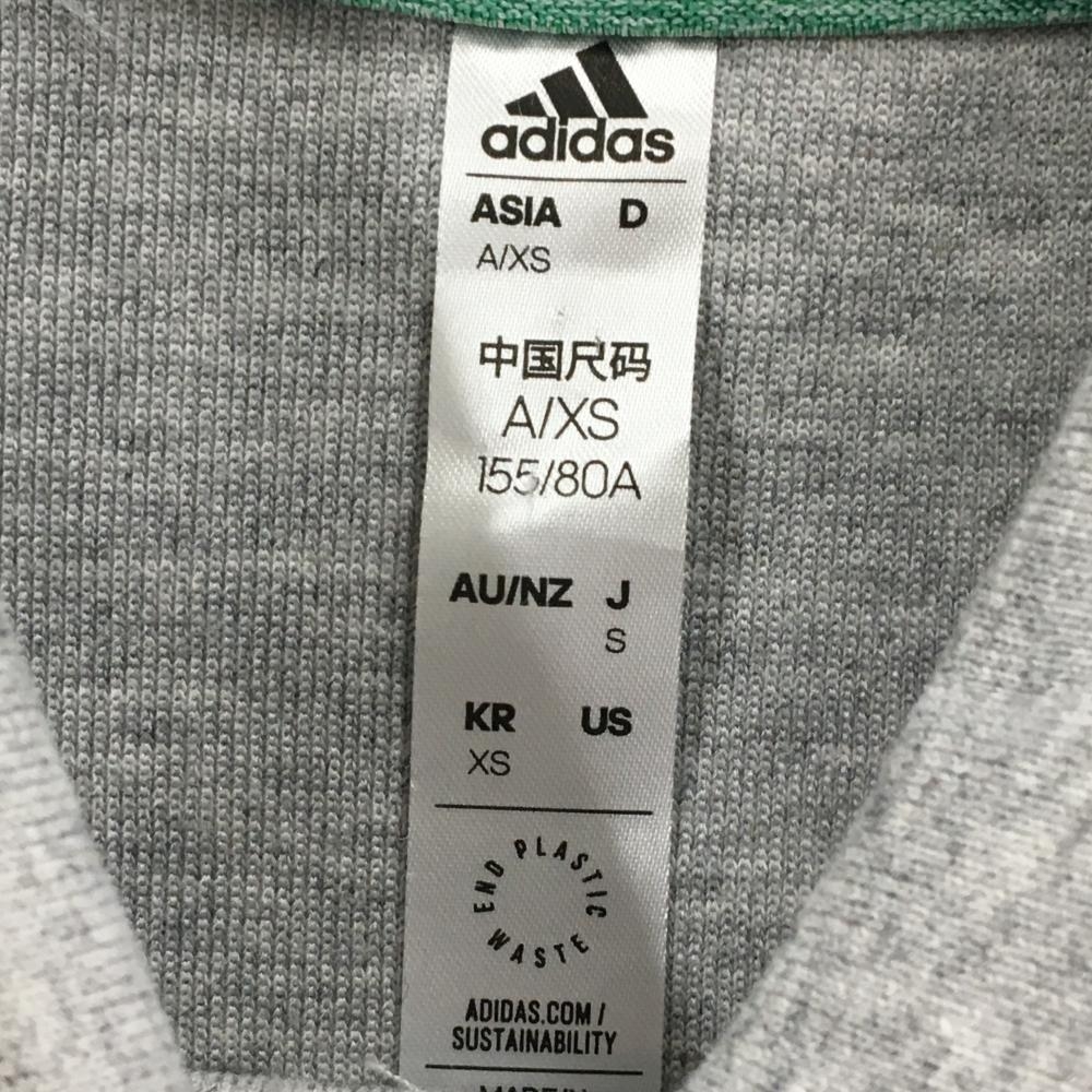 【超美品】アディダス 襟付きトレーナー グレー ロゴ白 ワッペン レディース S ゴルフウェア adidas
