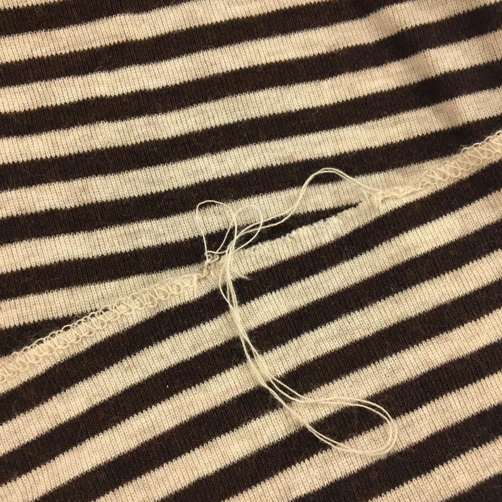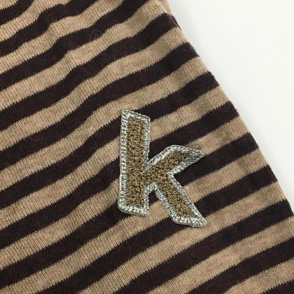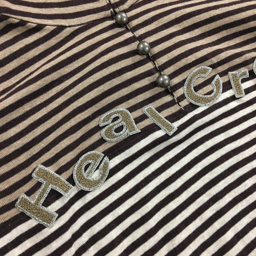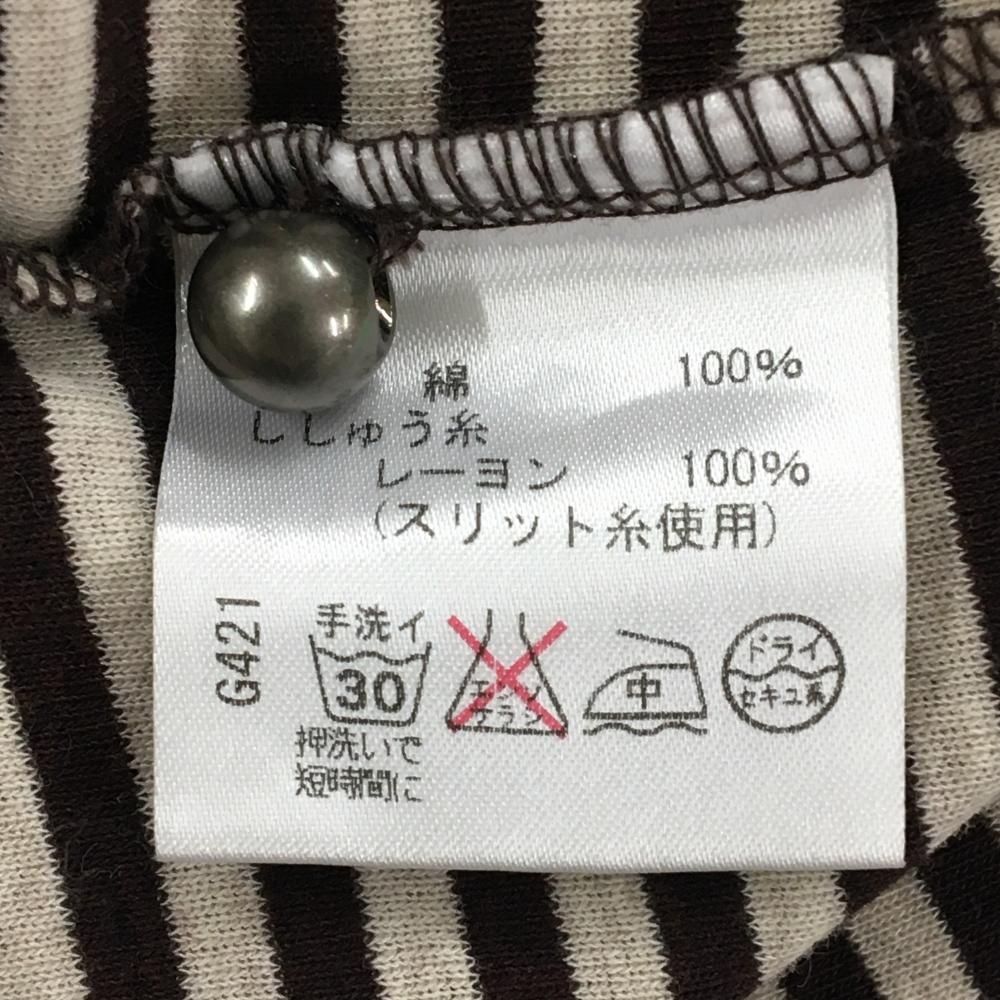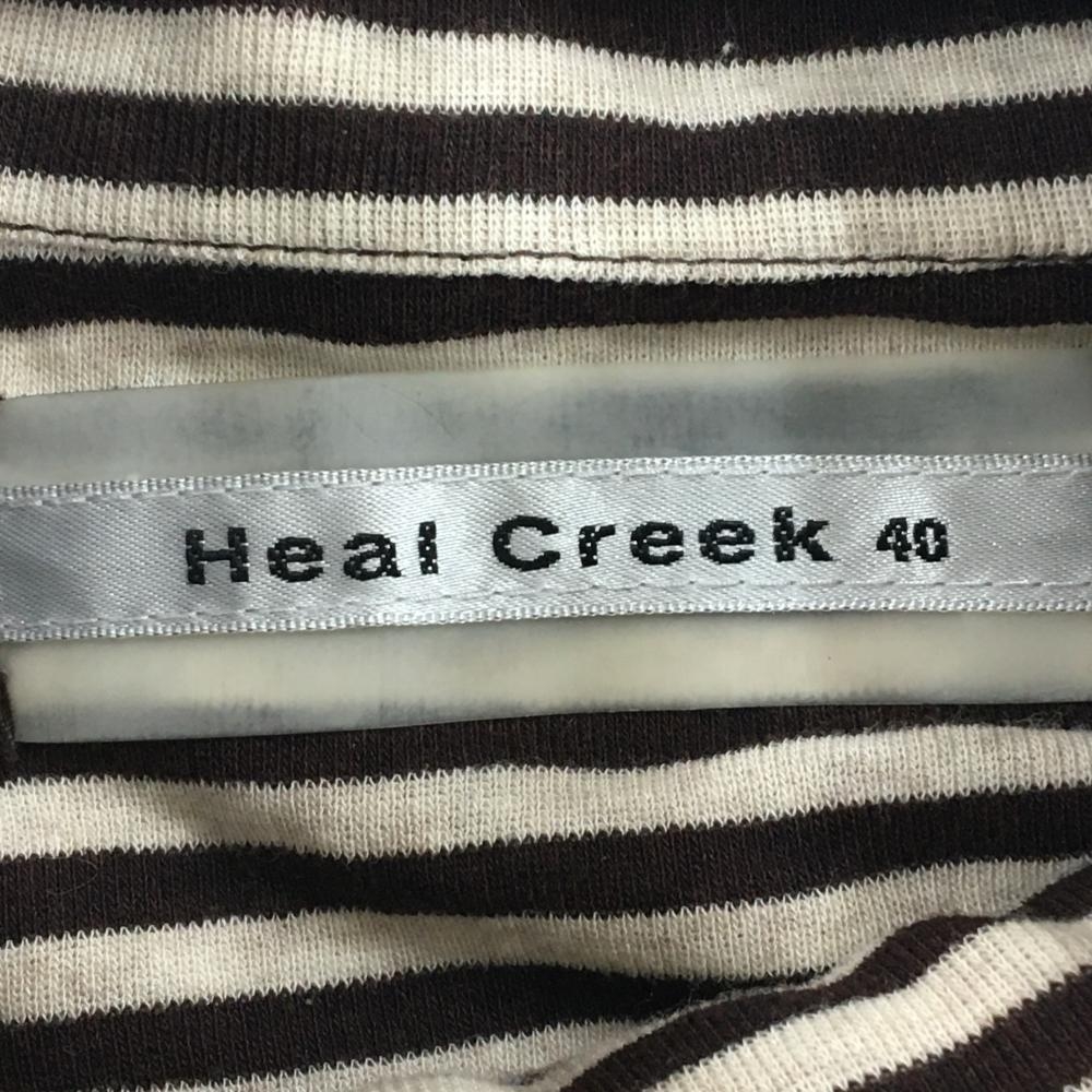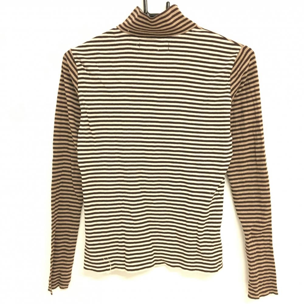 【美品】ヒールクリーク 長袖ハイネックシャツ ブラウン×杢ベージュ ボーダー レディース 40(M) ゴルフウェア Heal Creek