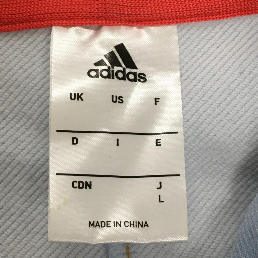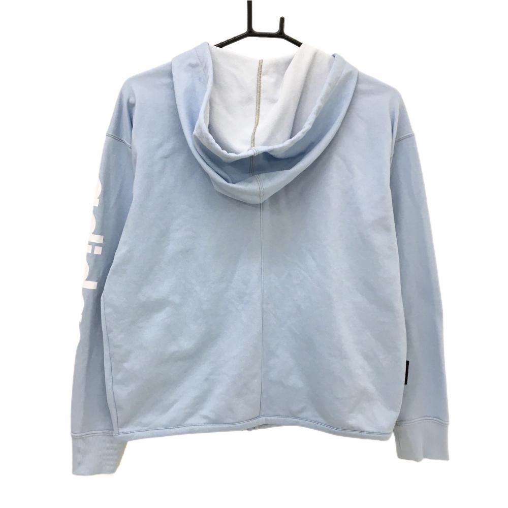 アディダス ジップパーカー ライトブルー×白 ロゴ刺しゅう 袖プリント レディース L ゴルフウェア adidas