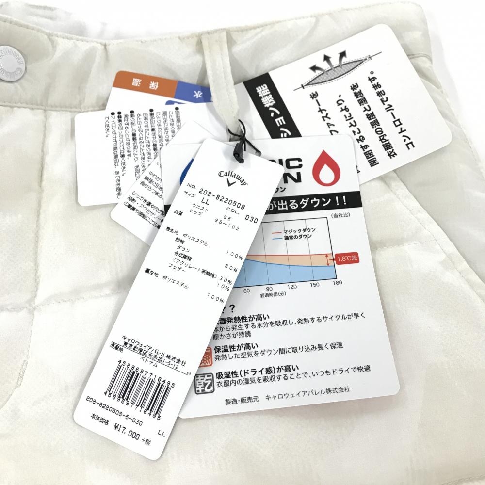 【新品】キャロウェイ ダウンパンツ 白×アイボリー 総柄 保温 撥水 メンズ LL ゴルフウェア Callaway