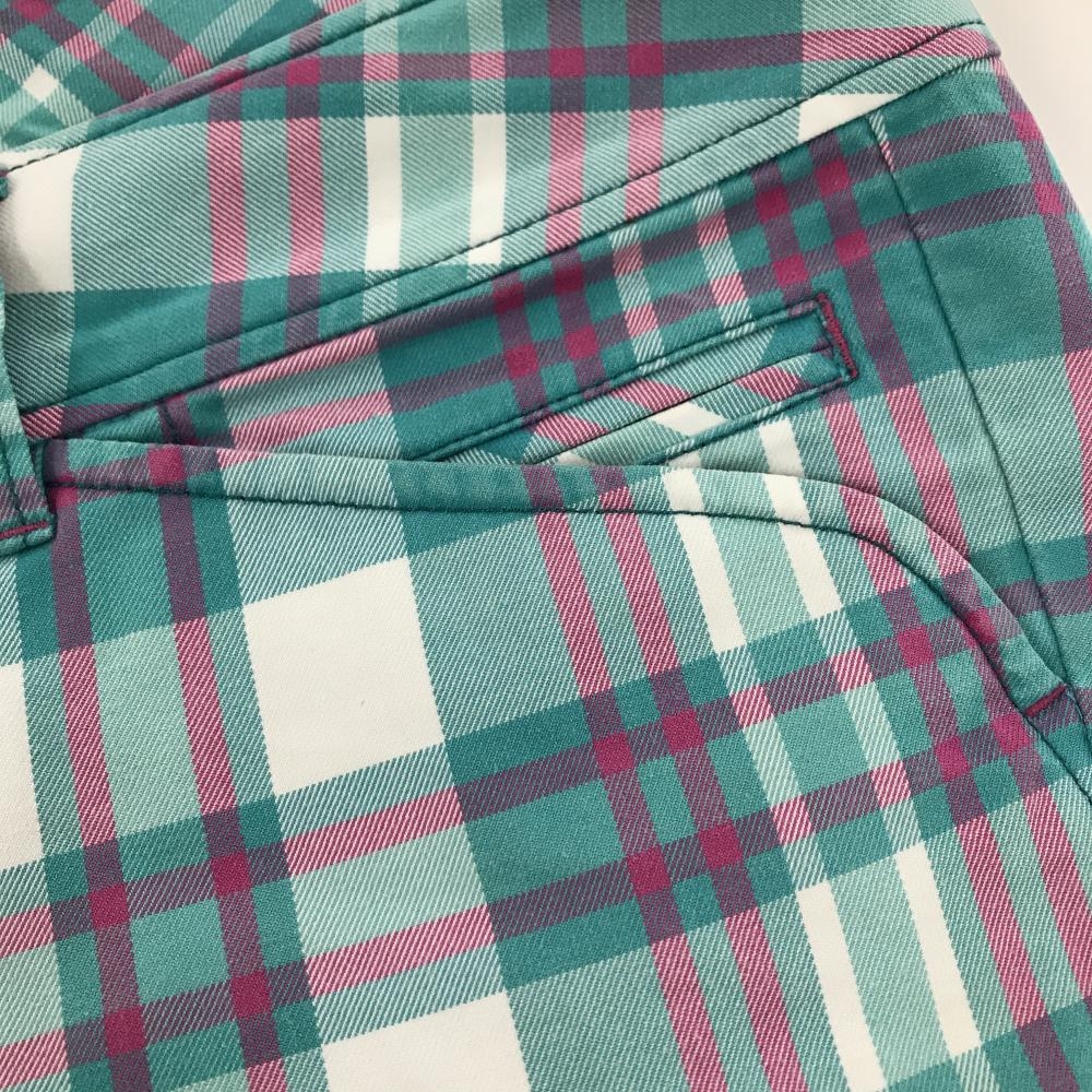 パーリーゲイツ 七分丈パンツ 白×ライトグリーン系×ピンク チェック レディース 2(L) ゴルフウェア PEARLY GATES