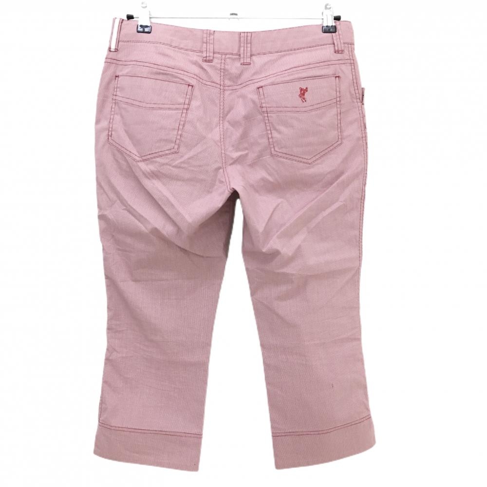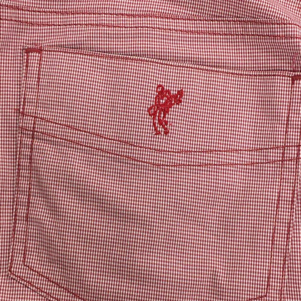 アシュワース 七分丈パンツ 白×レッド系 細目チェック 後ろロゴ レディース L ゴルフウェア ASHWORTH