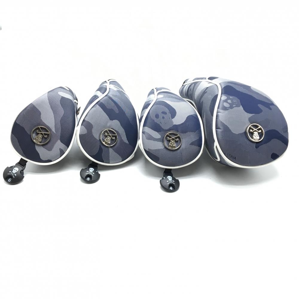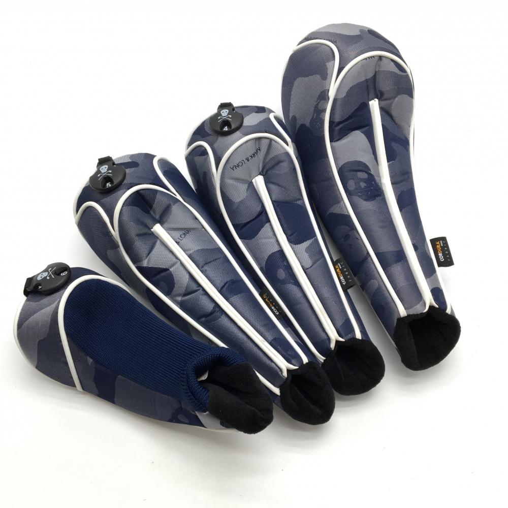 【美品】マークアンドロナ ヘッドカバー4点セット(DR FW×2 UT) ネイビー×白 カモフラ 迷彩 スカルゴルフ MARK&LONA