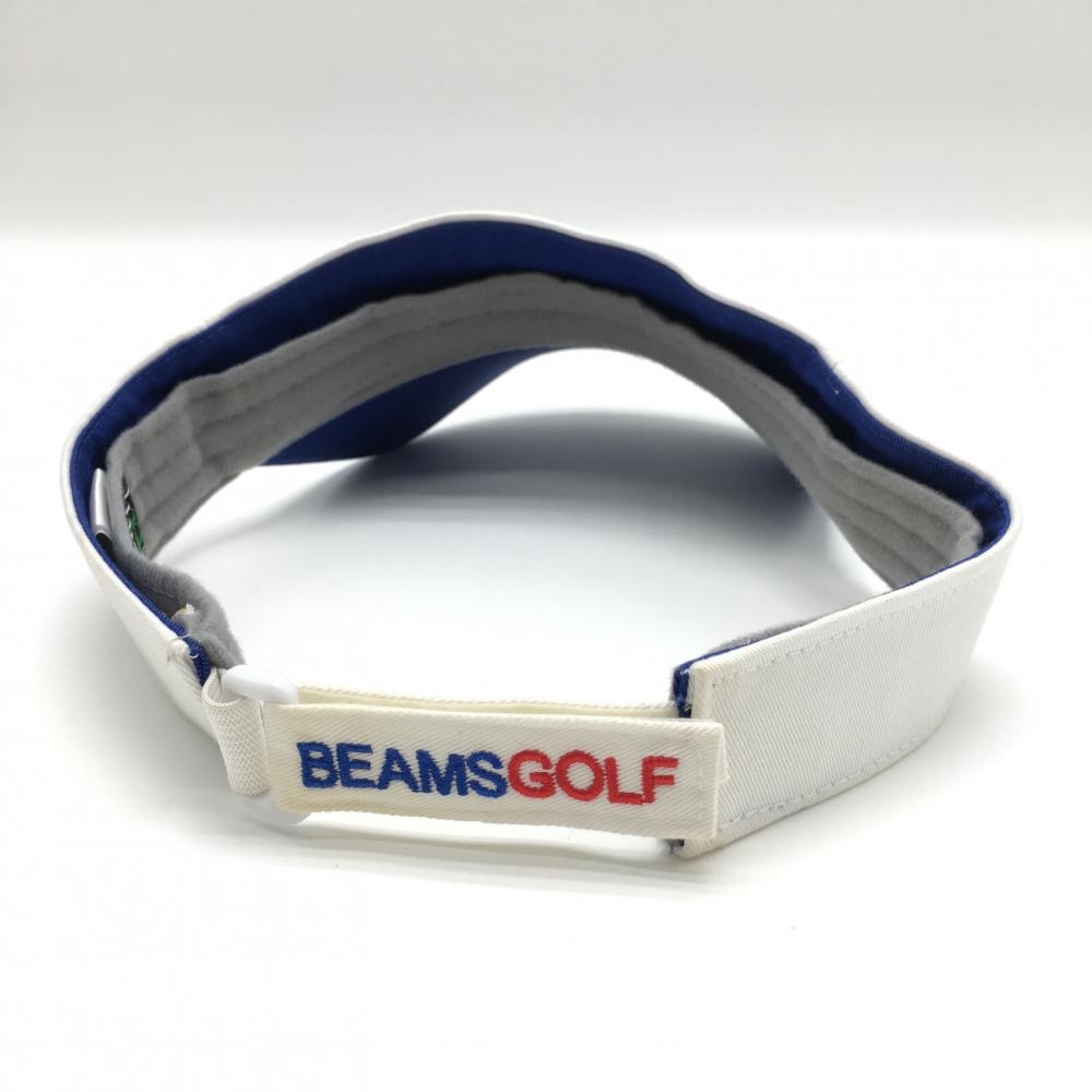 ビームスゴルフ サンバイザー 白×ブルー ロゴ刺しゅう ゴルフウェア BEAMS GOLF
