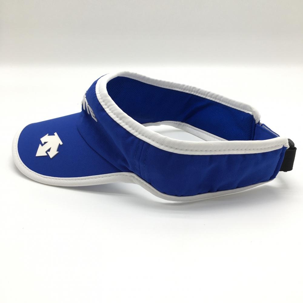 【美品】デサントゴルフ サンバイザー ブルー×白 フロントロゴ 中田英寿 F(55-57cm) ゴルフウェア DESCENTE