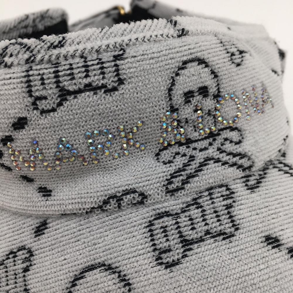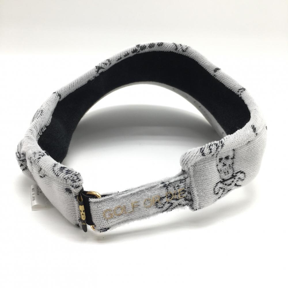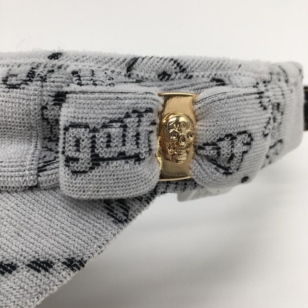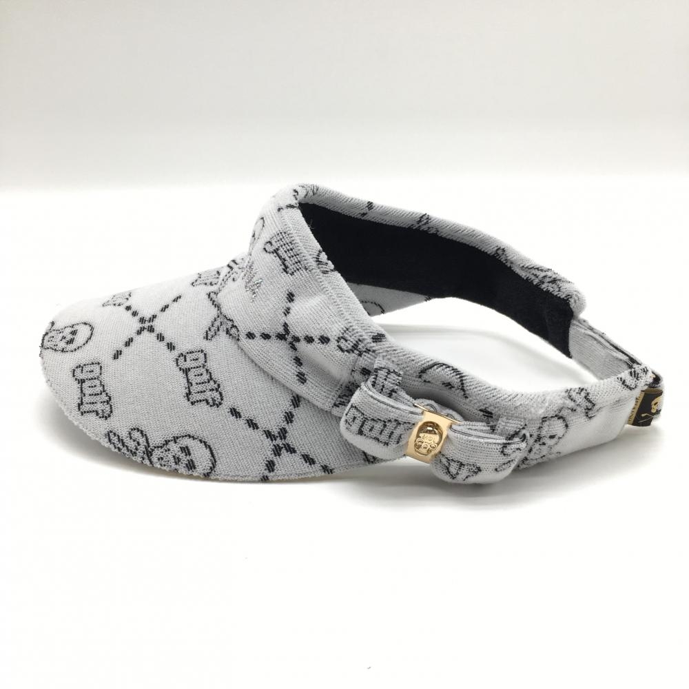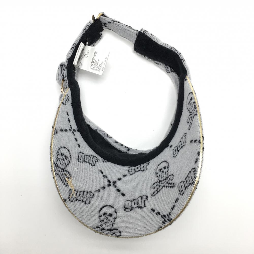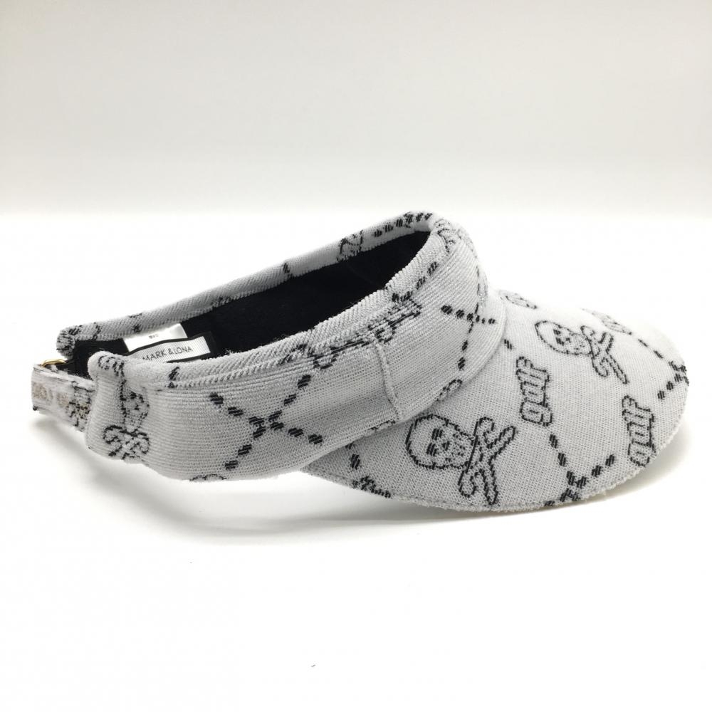 【美品】マークアンドロナ サンバイザー ライトグレー×黒 スカル総柄 サイドリボン レディース FREE ゴルフウェア MARK&LONA