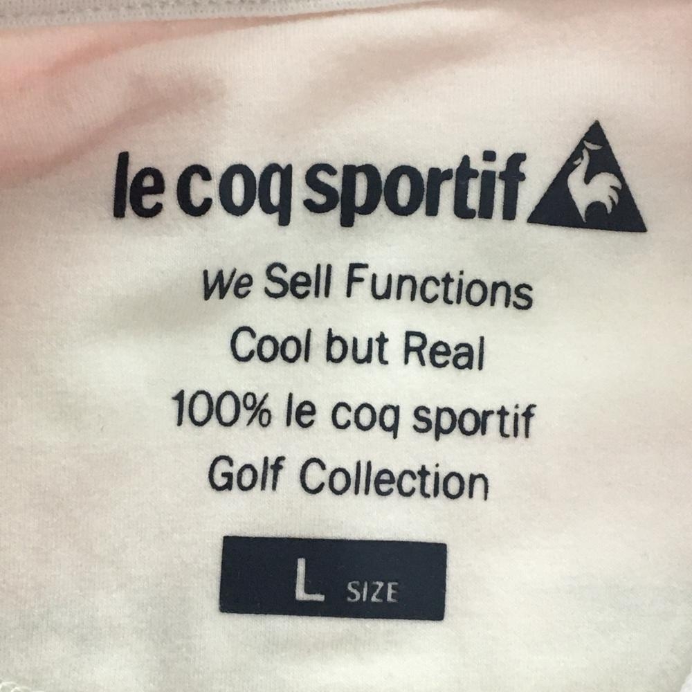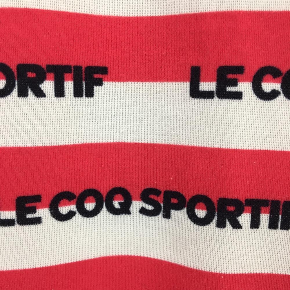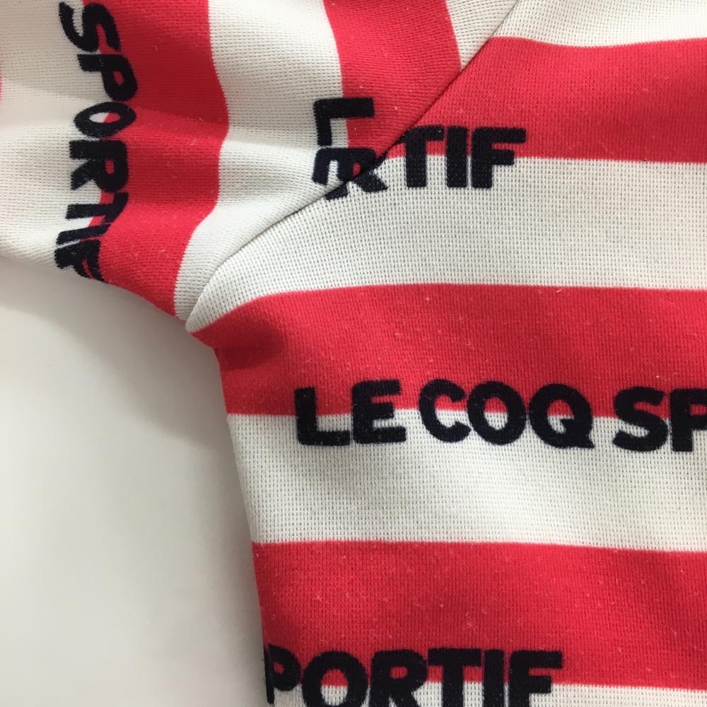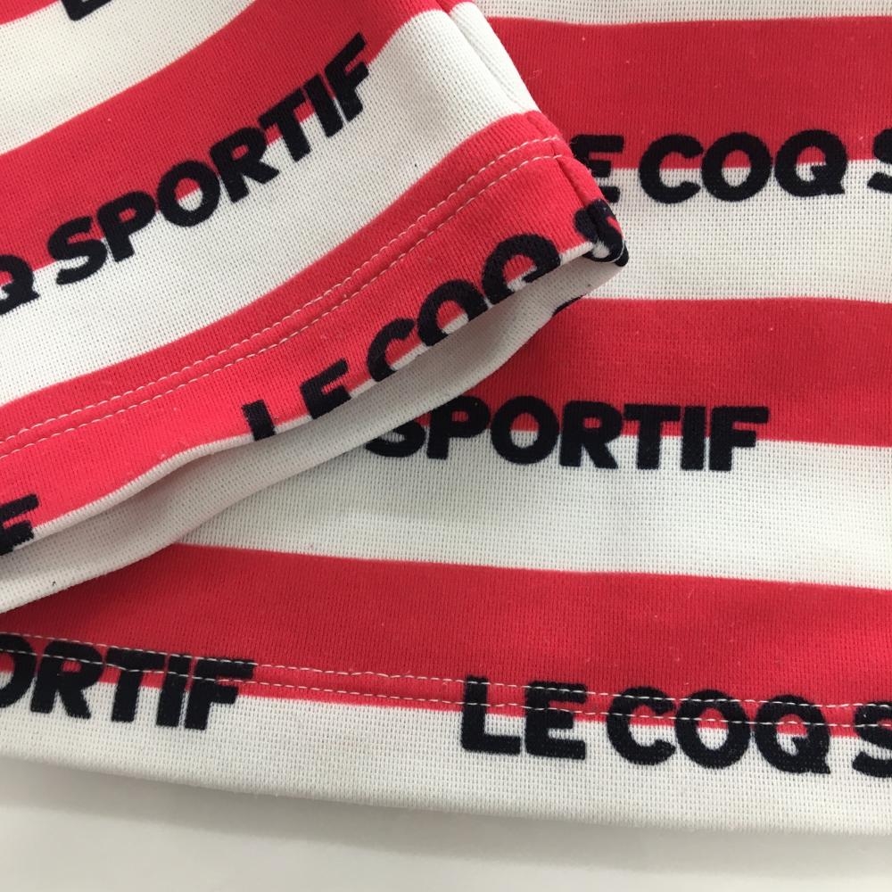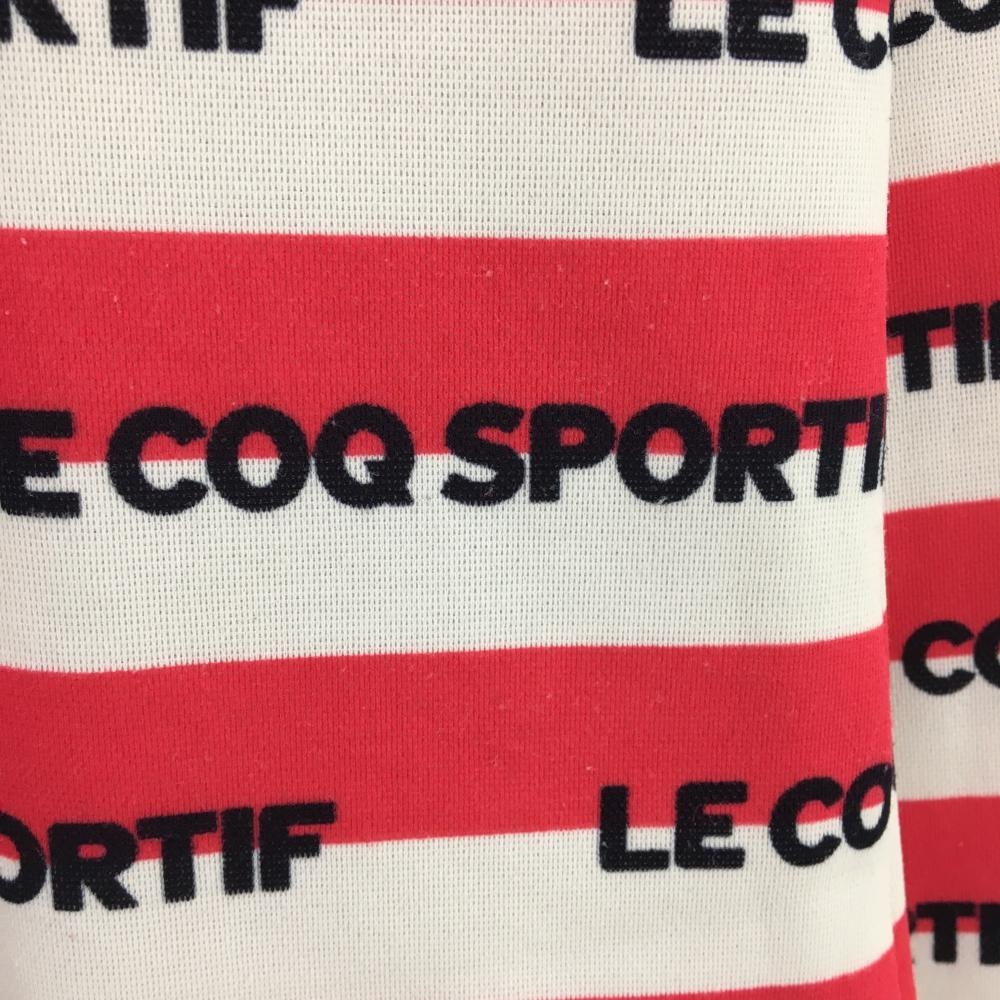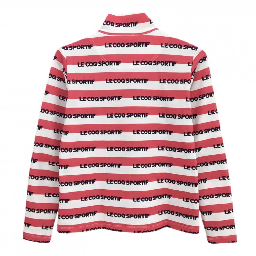 ルコックゴルフ 長袖ハイネックシャツ ピンク×白×ネイビー ボーダー ロゴ総柄 ハーフジップ レディース L ゴルフウェア le coq sportif