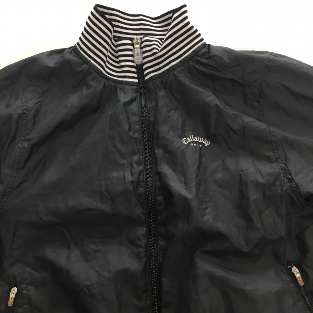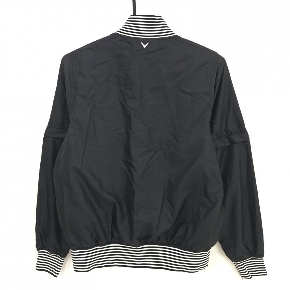 【超美品】キャロウェイ 2WAYジャケット 黒×白 ネック・袖口ボーダー WINDSPORT 袖着脱可 レディース M ゴルフウェア Callaway