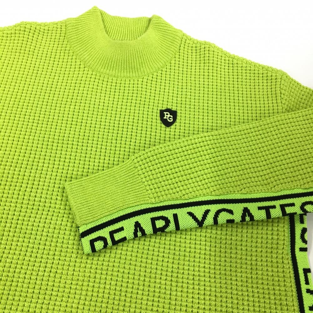 パーリーゲイツ ハイネックセーター ライトグリーン×ネイビー ニット レディース 1(M) ゴルフウェア PEARLY GATES