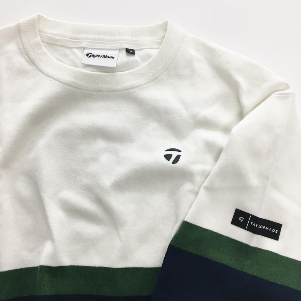 【美品】テーラーメイド セーター 白×ネイビー 立体ロゴ 綿混 ニット メンズ O(XL) ゴルフウェア TaylorMade