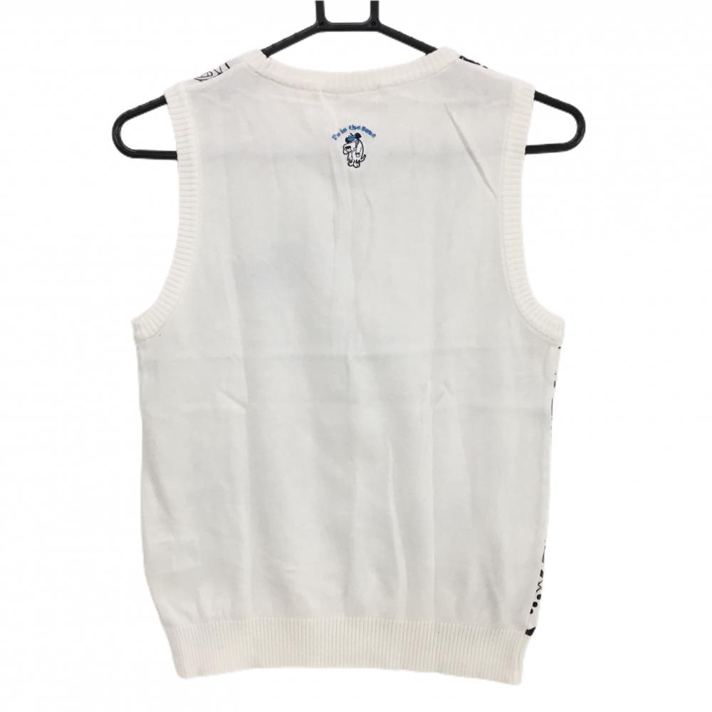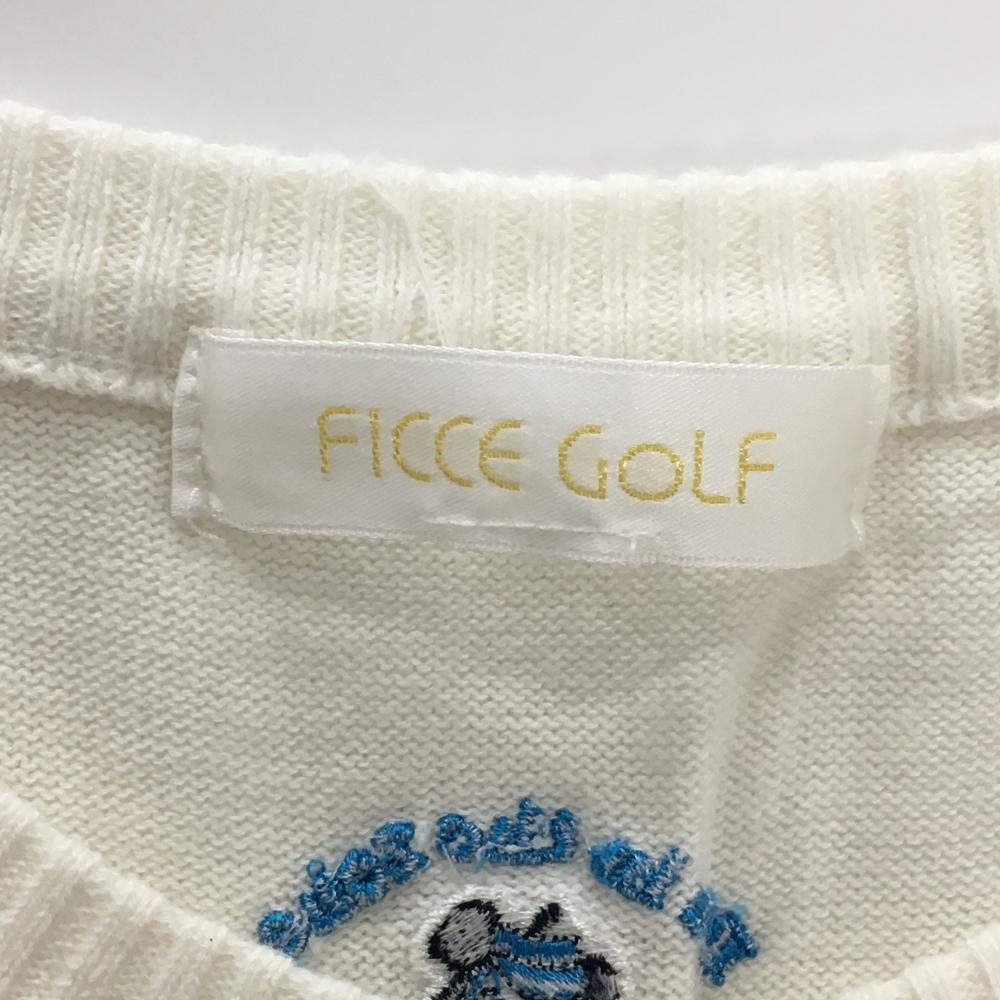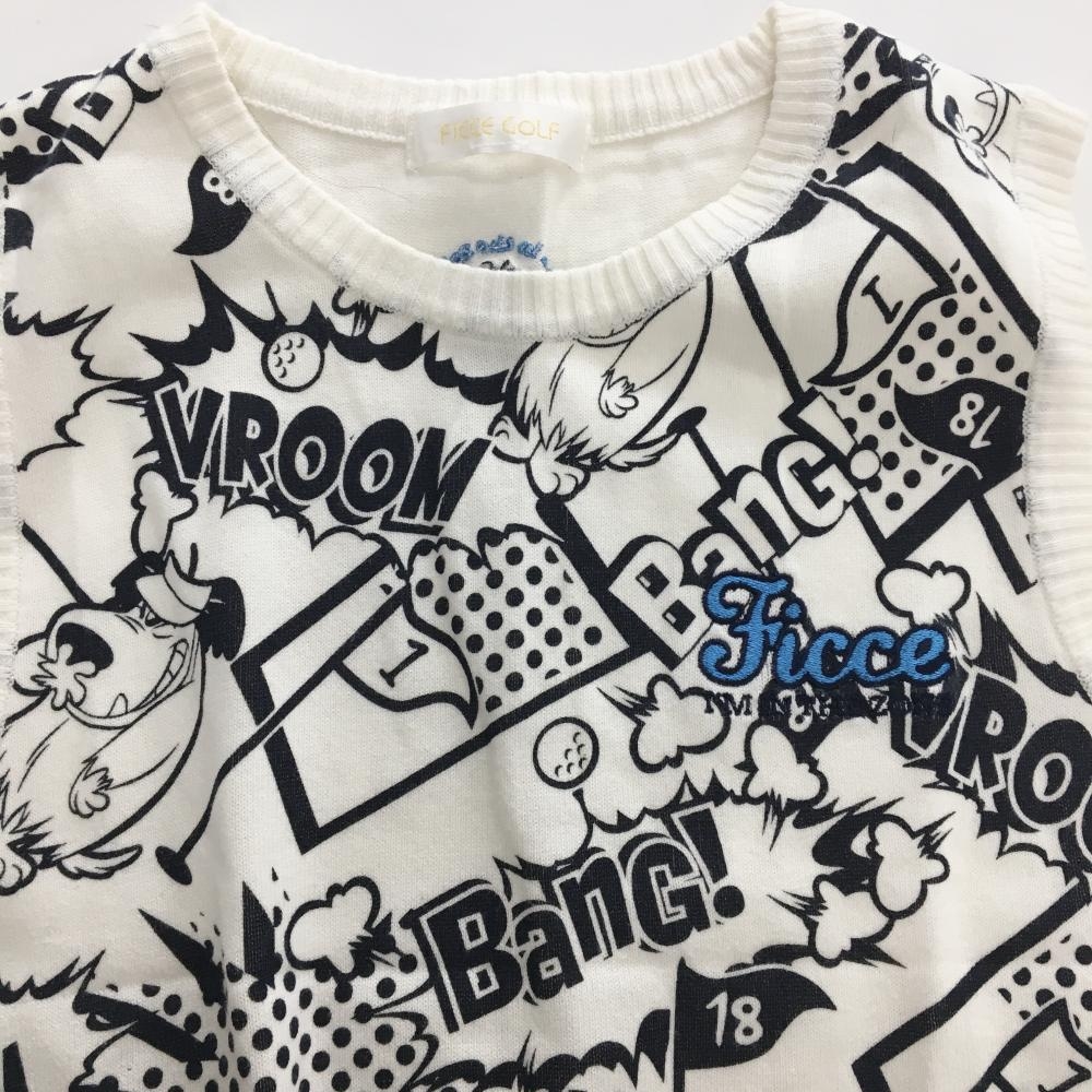 【美品】フィッチェゴルフ×Wacky Races ニットベスト 白×黒 前総柄 レディース M ゴルフウェア FICCE GOLF