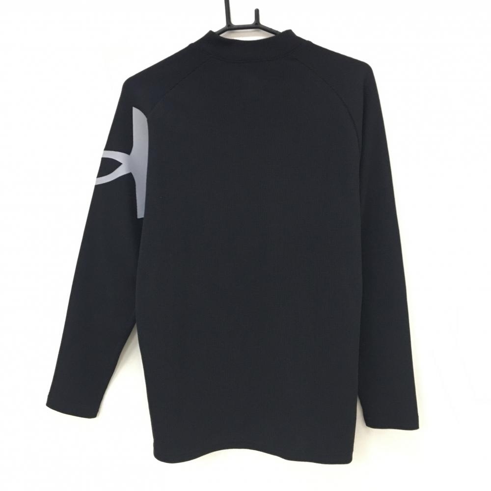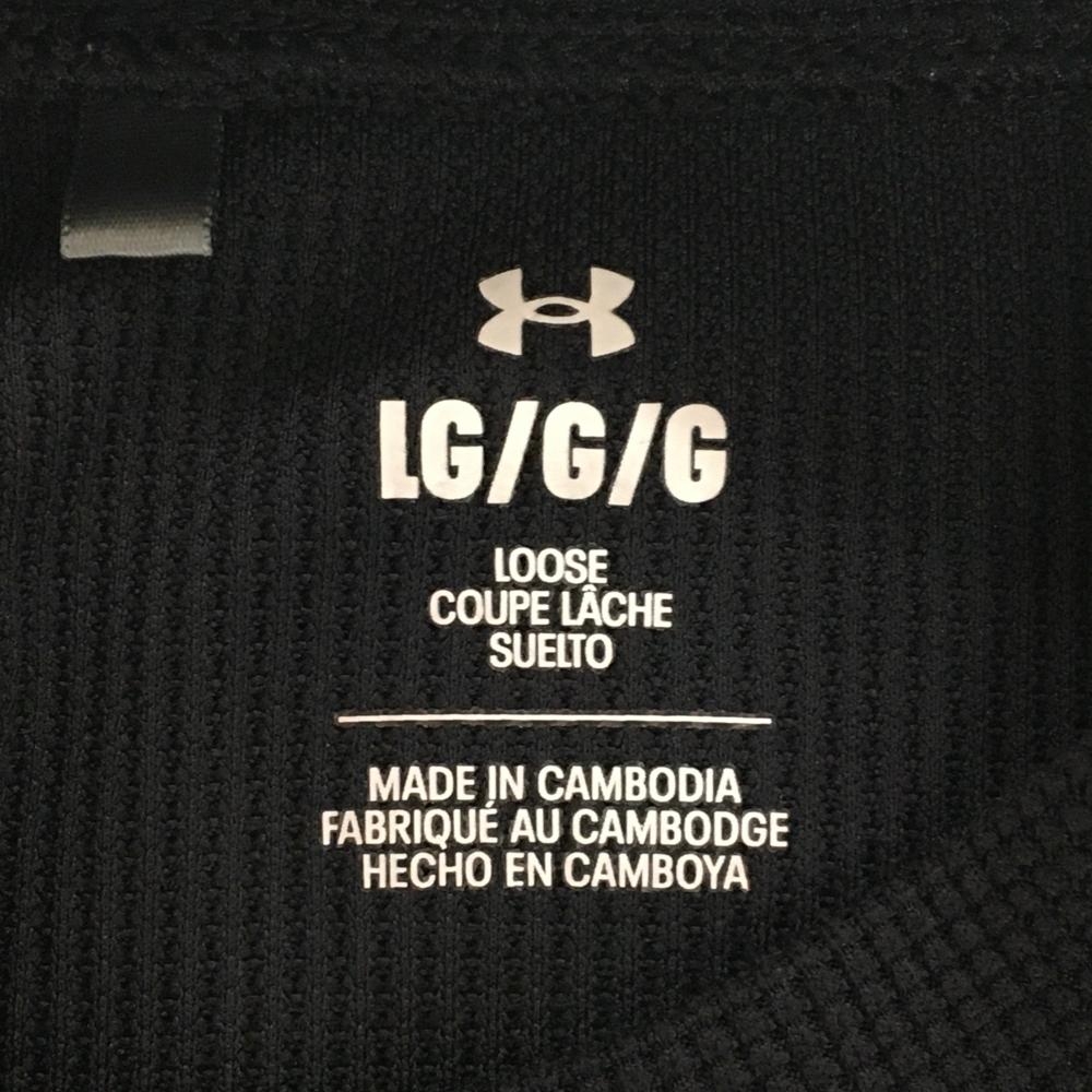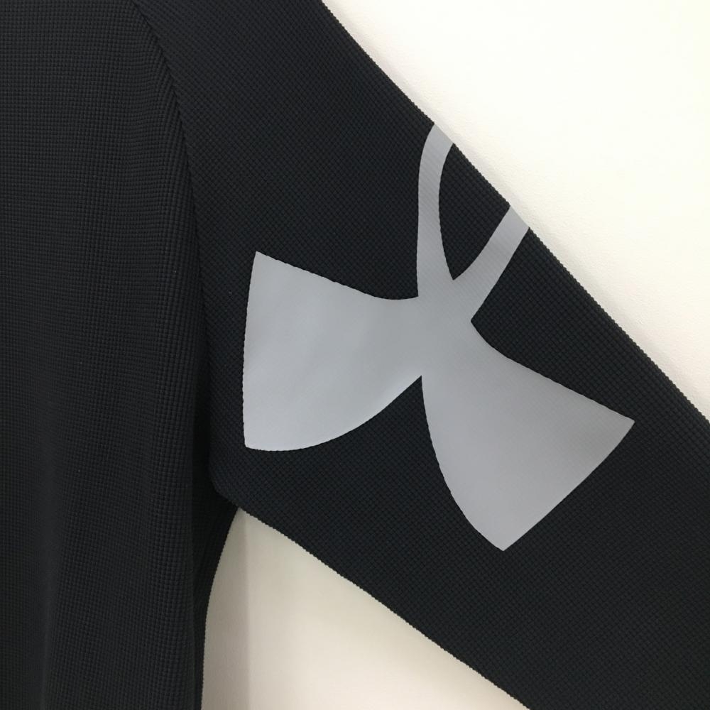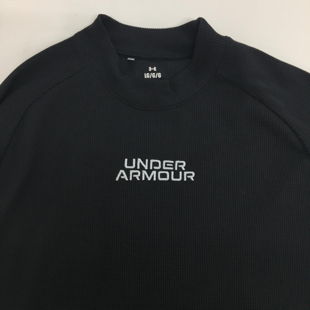 【超美品】アンダーアーマー 長袖ハイネックシャツ 黒 織生地 袖ビッグロゴ LOOSE メンズ LG ゴルフウェア 2023年モデル UNDER ARMOUR