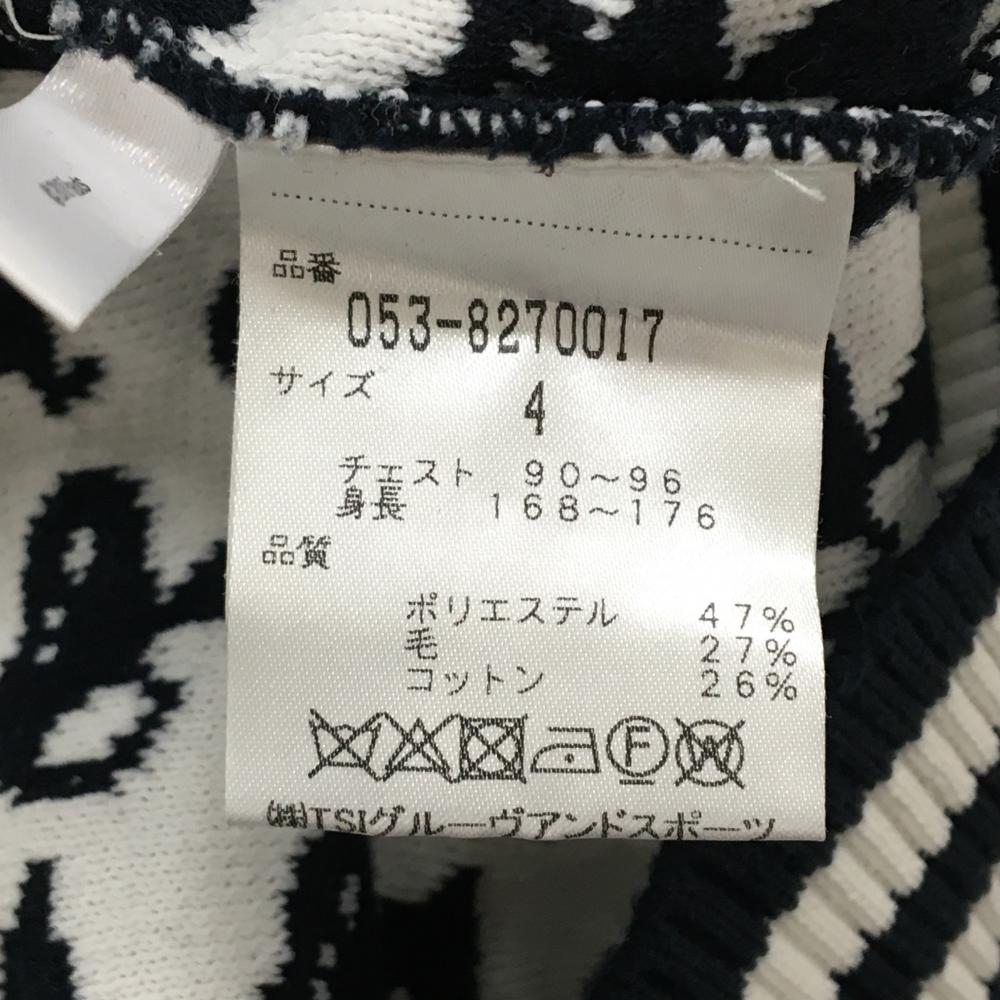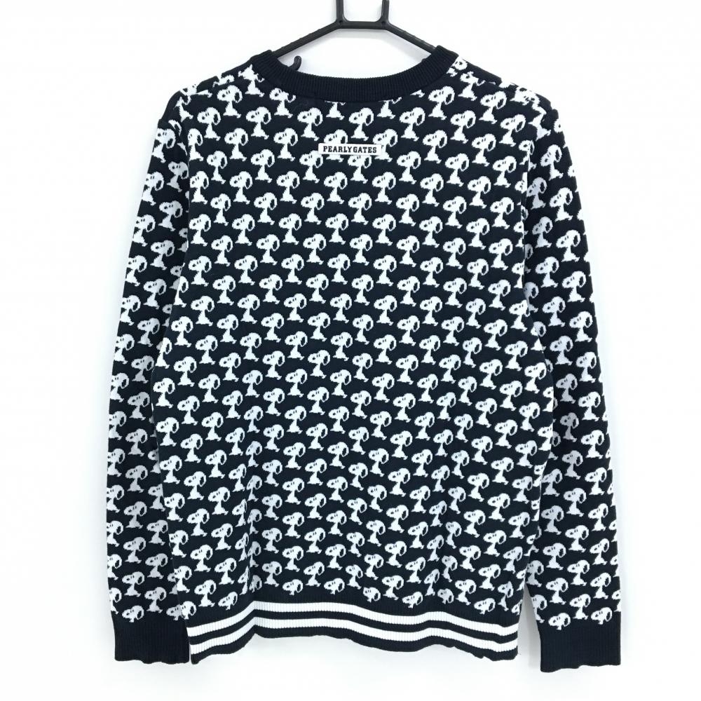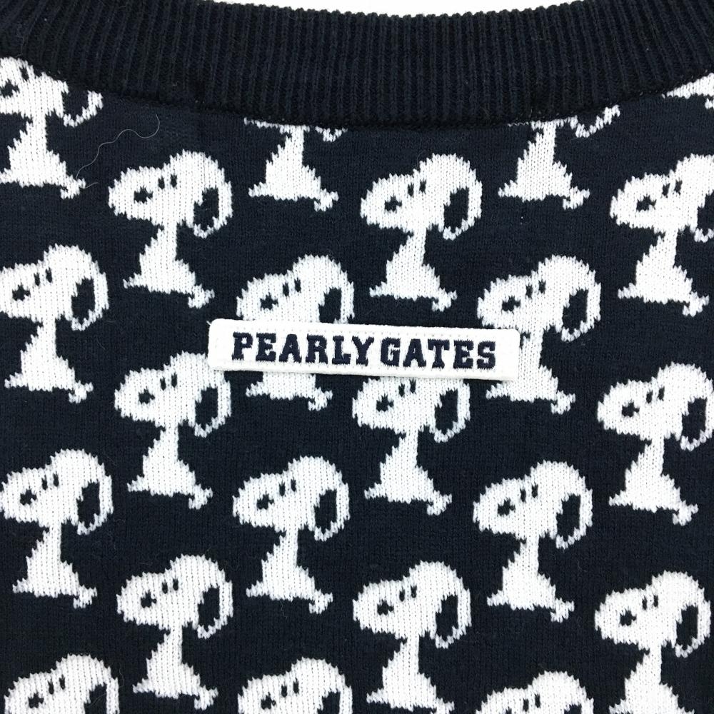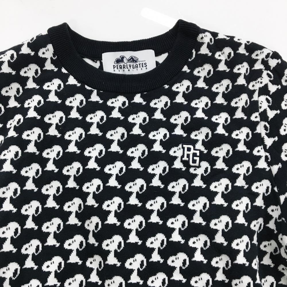 【美品】パーリーゲイツ×PEANUTS セーター ネイビー×白 スヌーピー総柄 ニット メンズ 4(M) ゴルフウェア PEARLY GATES