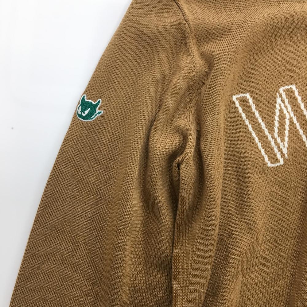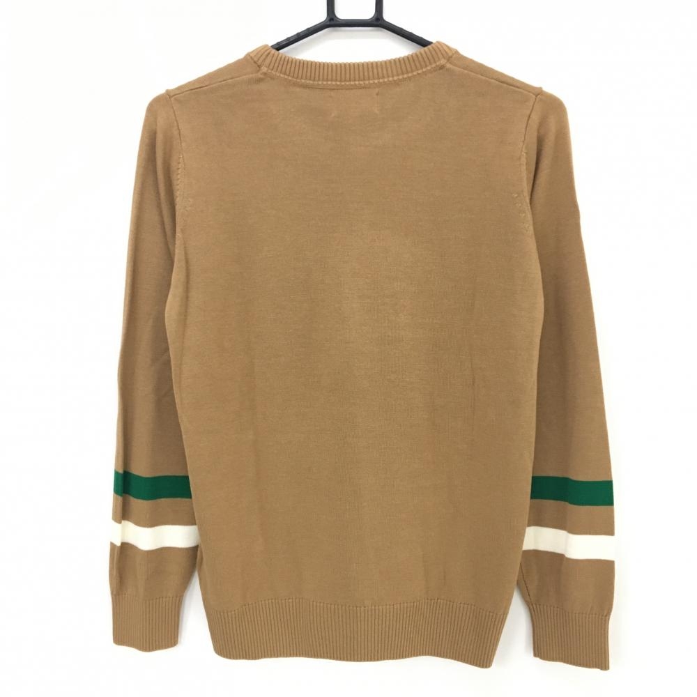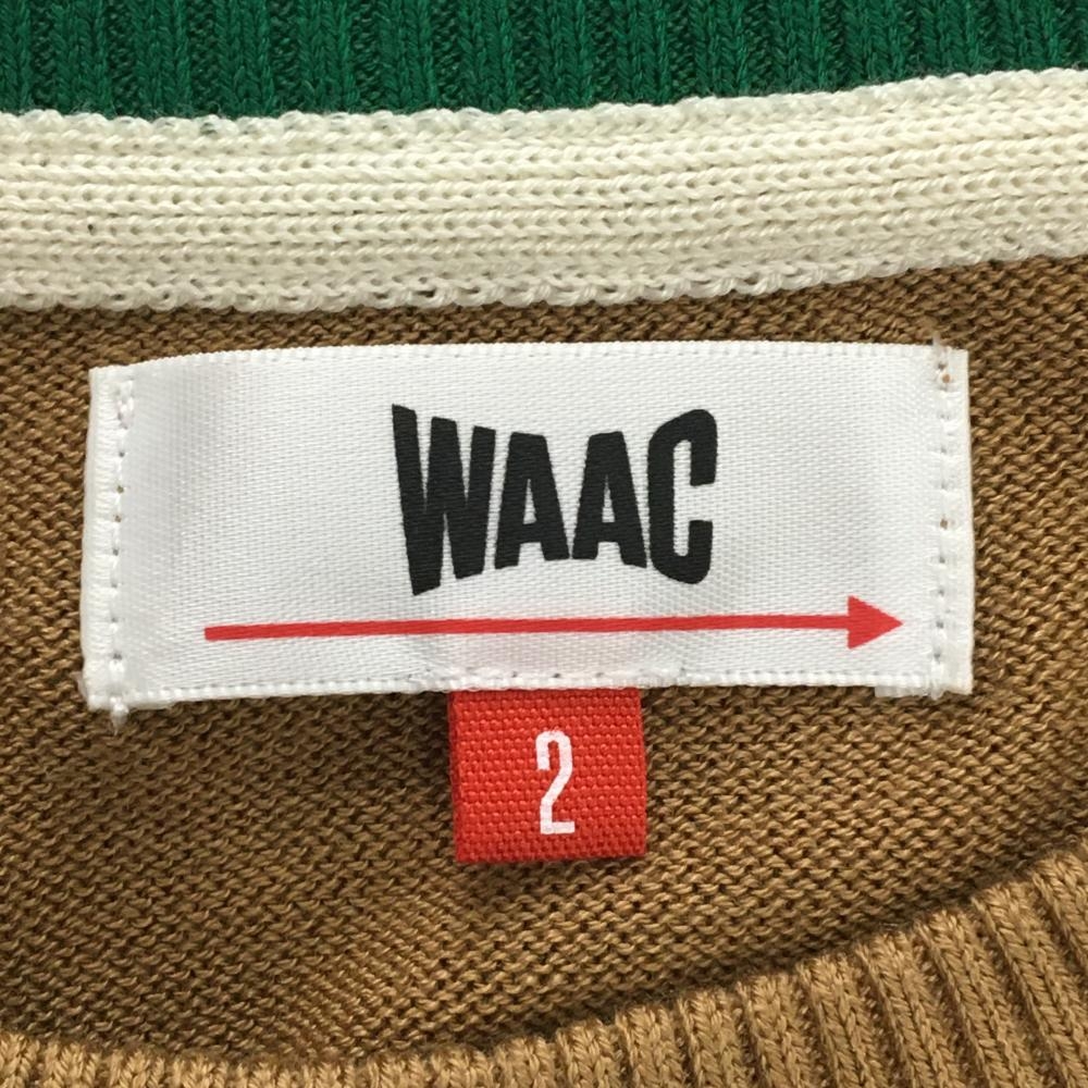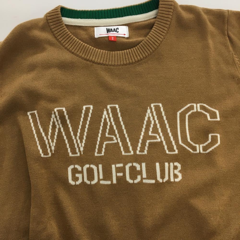 【超美品】ワック セーター ライトブラウン×白系×グリーン フロントロゴ ウール混 ニット レディース 2(M) ゴルフウェア WAAC