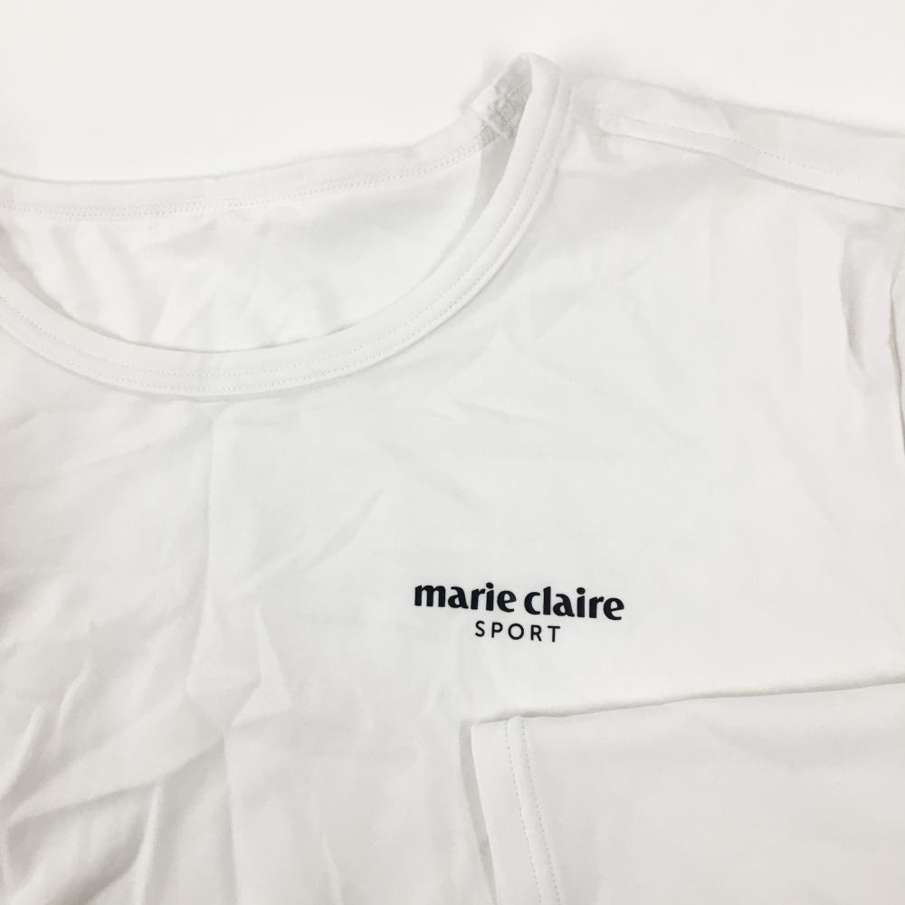 【超美品】マリクレールスポール インナーシャツ 白 ロゴ黒 ストレッチ レディース LL ゴルフウェア marie claire
