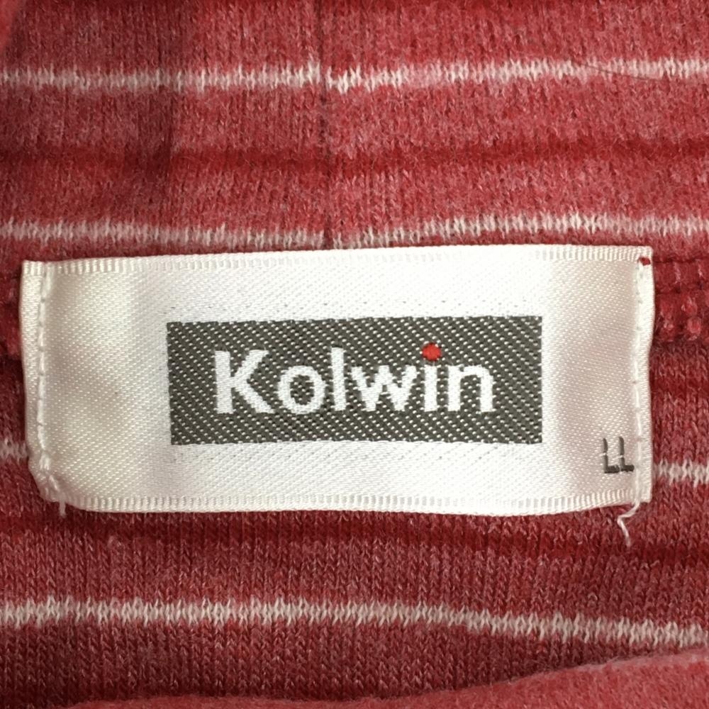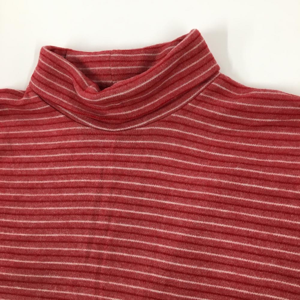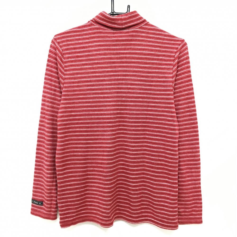 【超美品】コルウィン 長袖ハイネックシャツ レッド×白 ボーダー 起毛素材 袖ロゴ レディース LL ゴルフウェア Kolwin