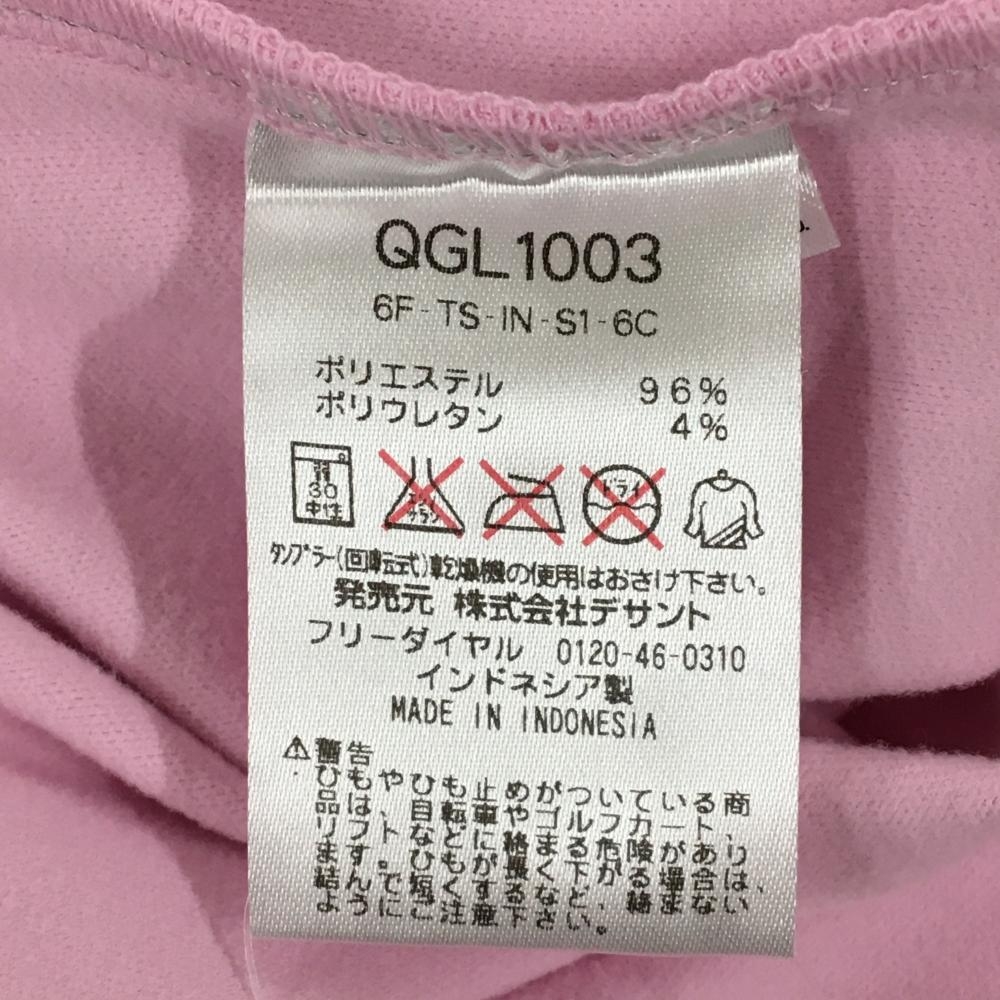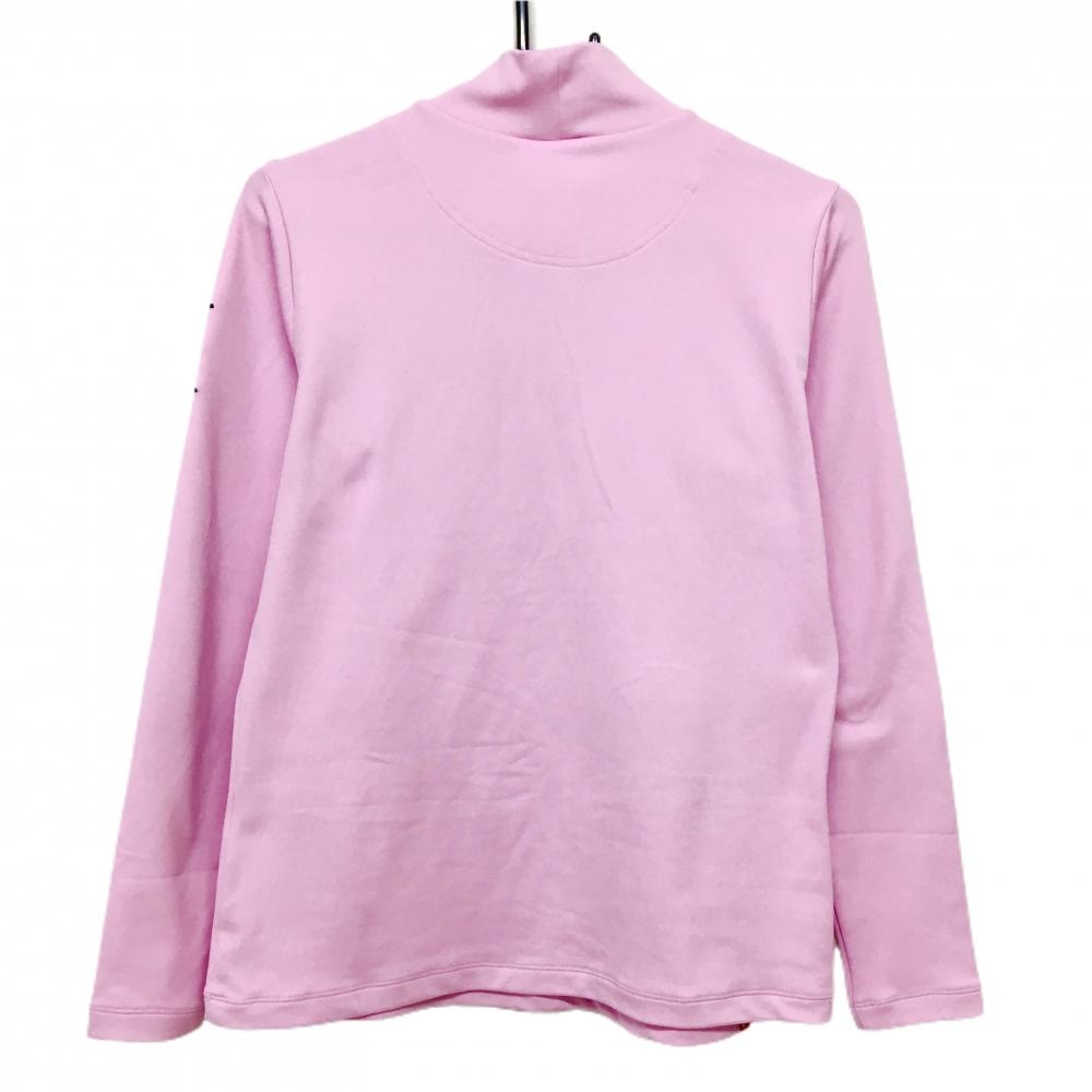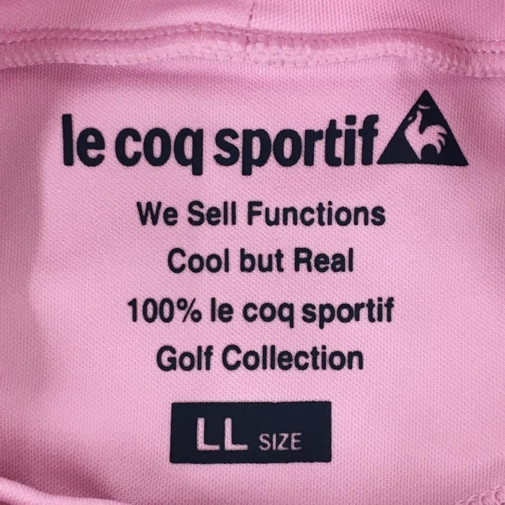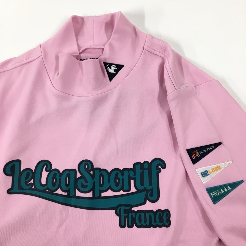 【超美品】ルコックゴルフ 長袖ハイネックシャツ ピンク×ブルーグリーン 裏微起毛 袖ペナント レディース LL ゴルフウェア le coq sportif