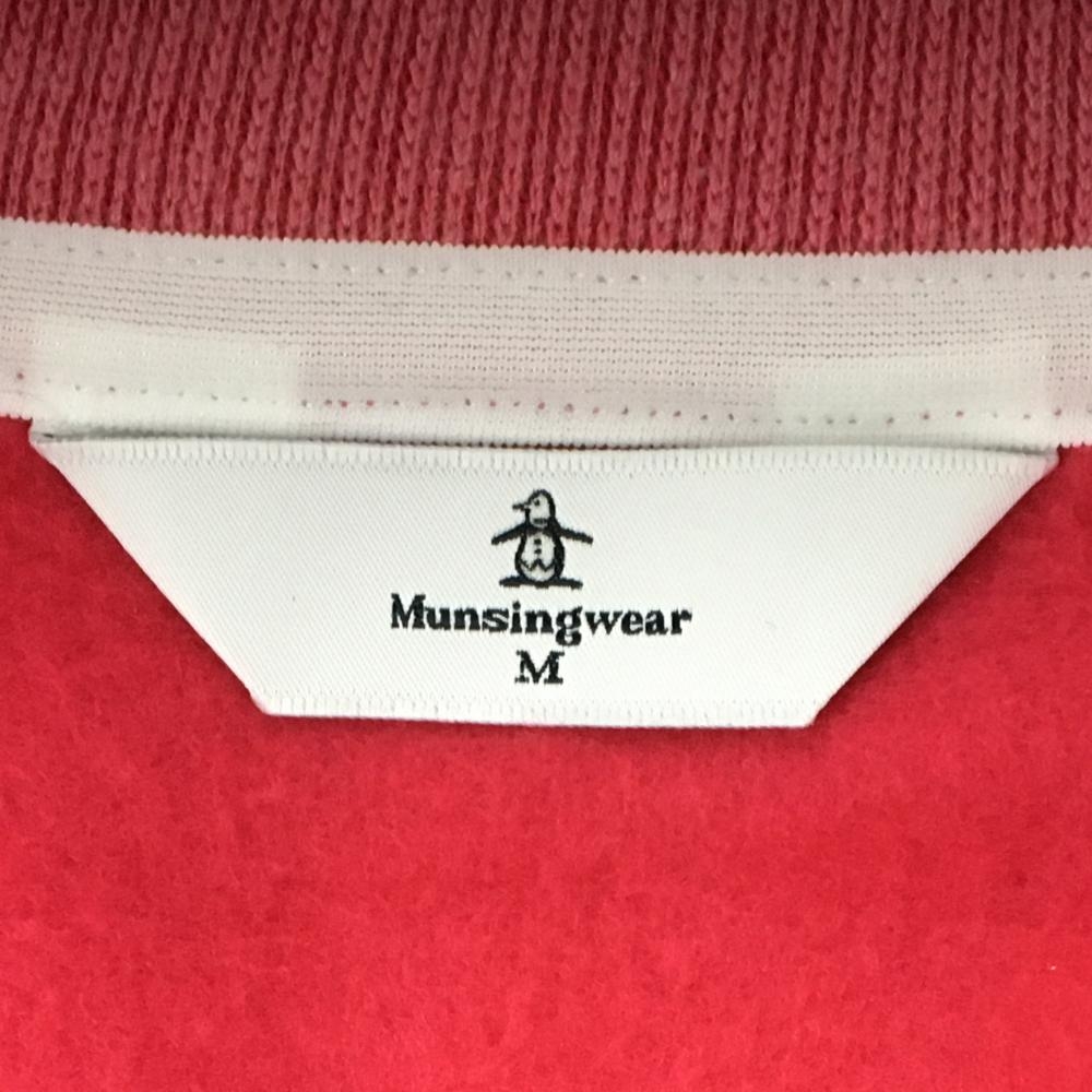 【超美品】マンシングウェア ニットジャケット ピンク×白 裏起毛 サイド切替 胸ロゴ レディース M ゴルフウェア Munsingwear