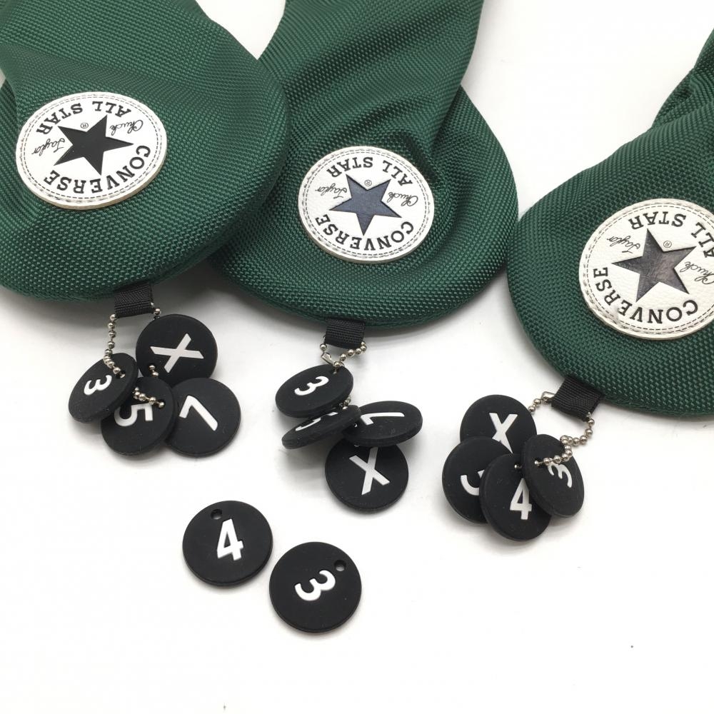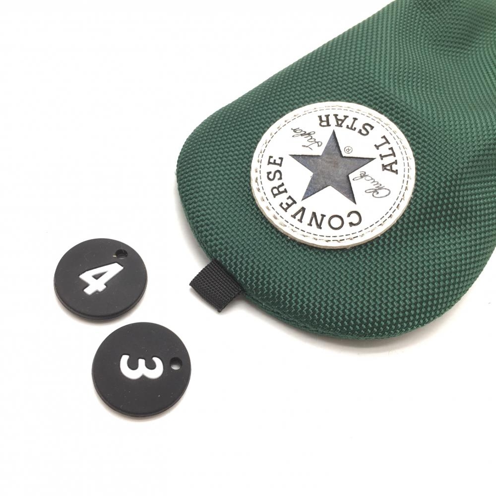 【美品】コンバース ヘッドカバー4点セット(FW×2 UT×2) グリーン×白 ワッペンゴルフ CONVERSE
