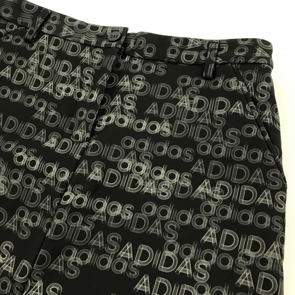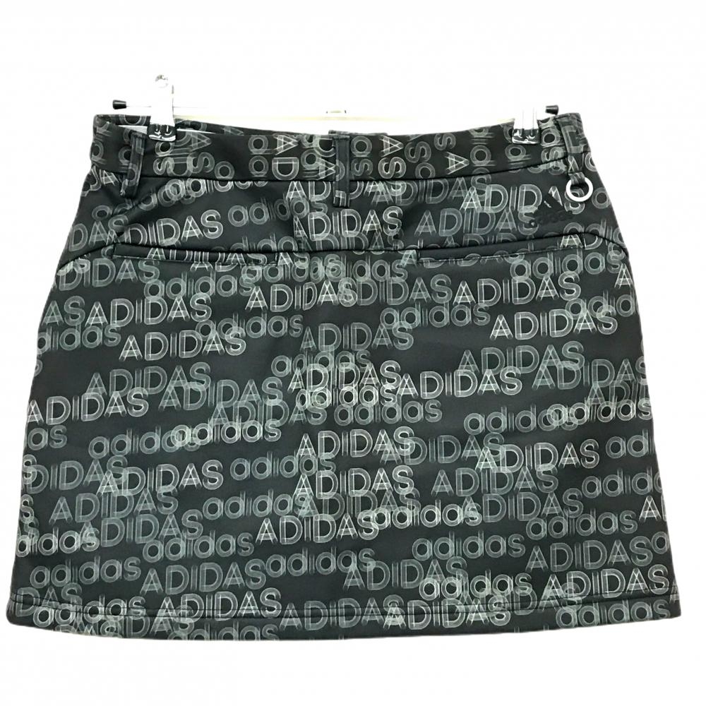 【超美品】アディダス スカート 黒×カーキ ロゴ総柄 裏起 レディース OT ゴルフウェア adidas