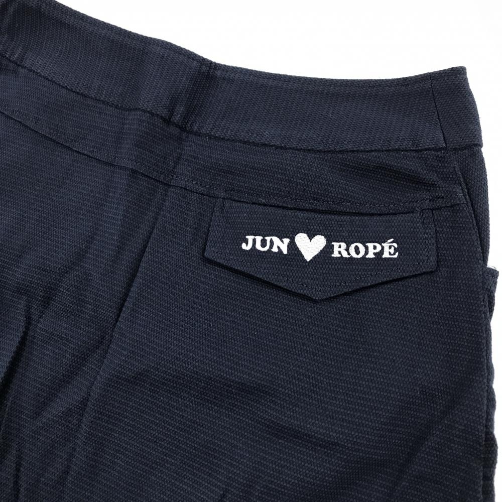 【美品】ジュンアンドロペ スカート ネイビー 地模様 レースアップ インナーパンツ付 レディース M ゴルフウェア JUN&ROPE