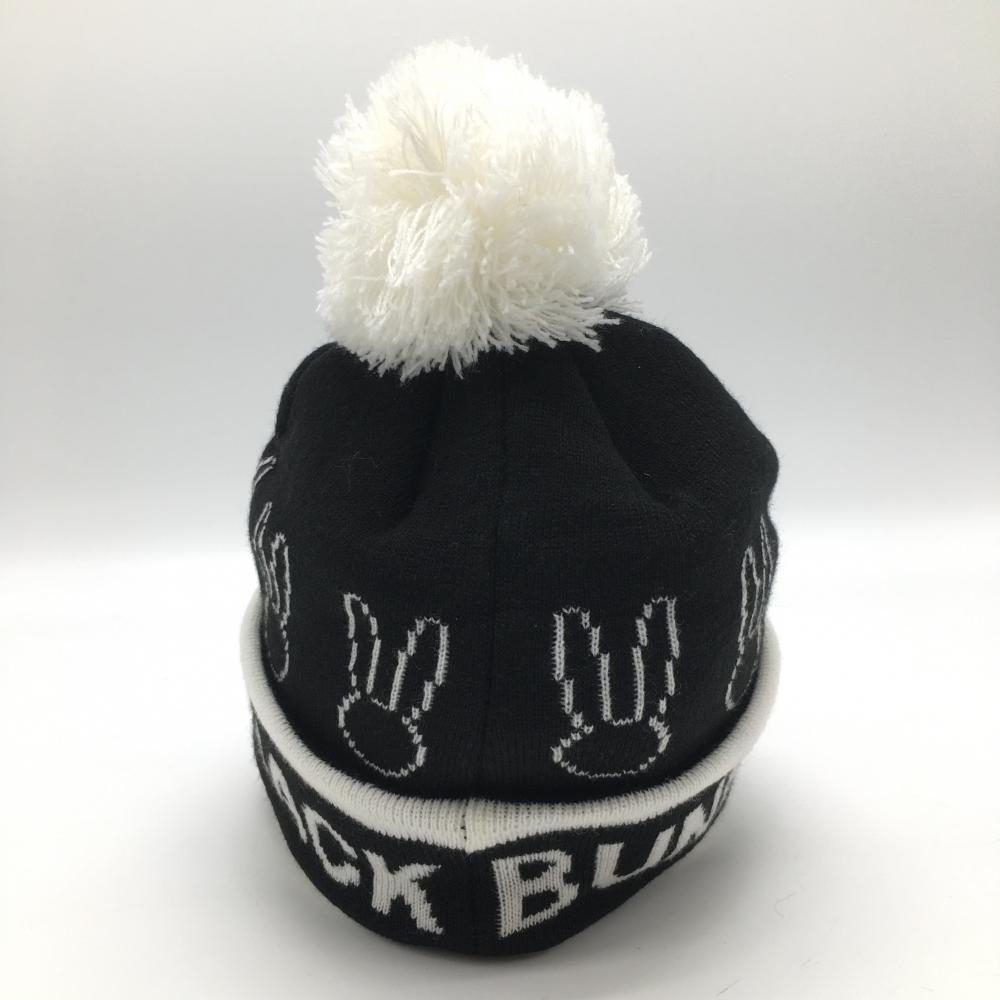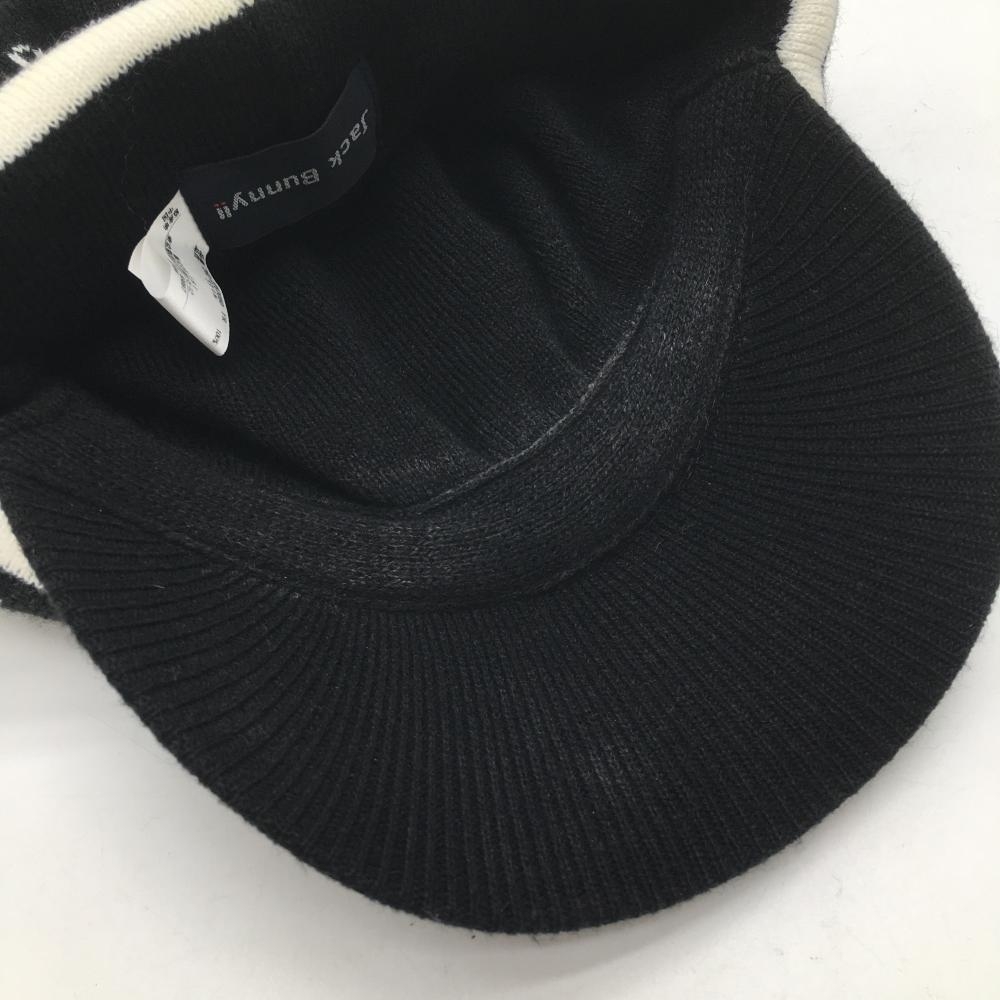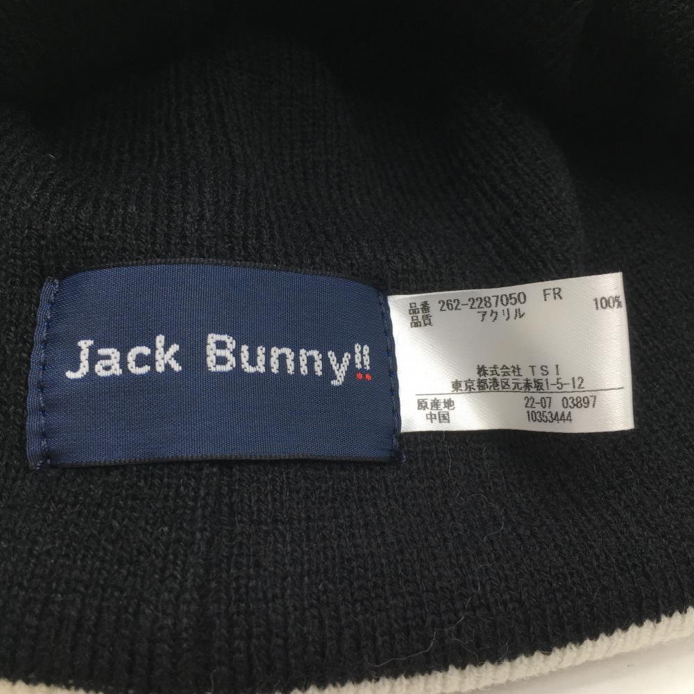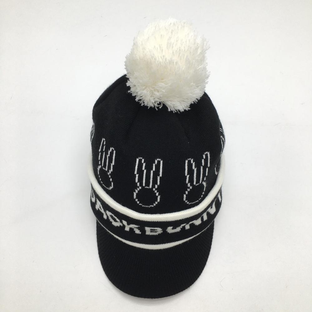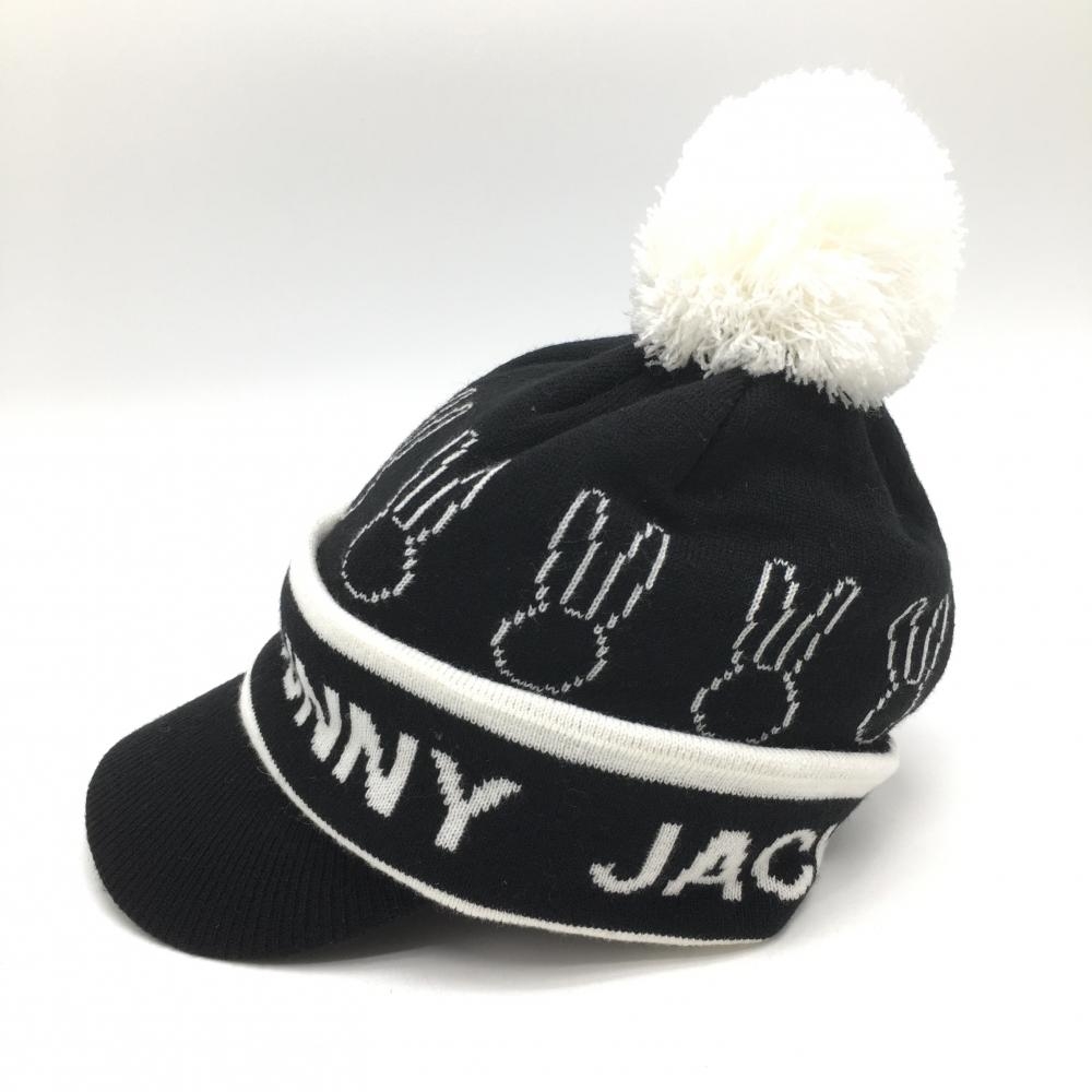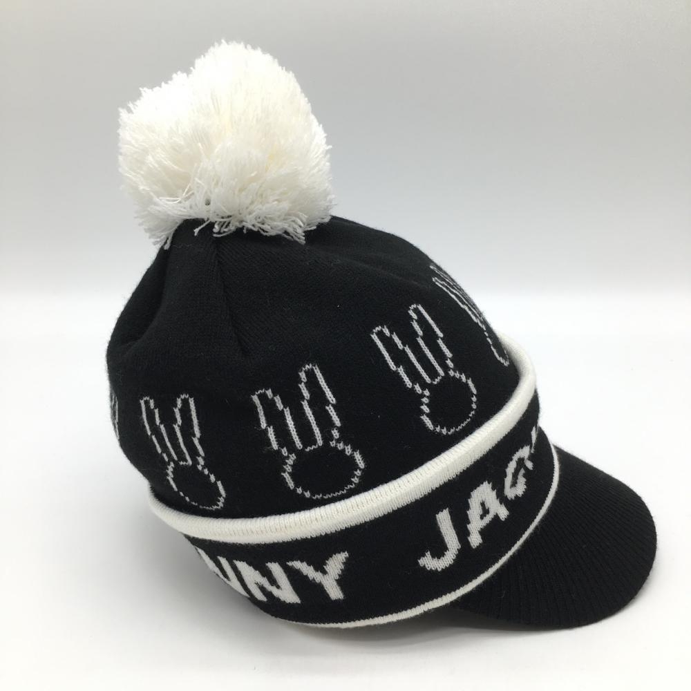 ジャックバニー つば付ニット帽 黒×白 ラビット柄 ボンボン付 FR ゴルフウェア Jack Bunny