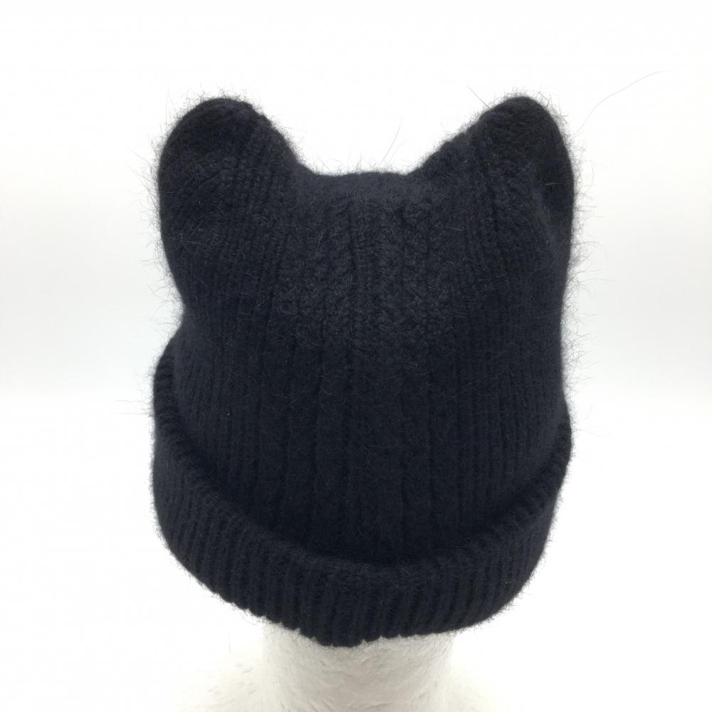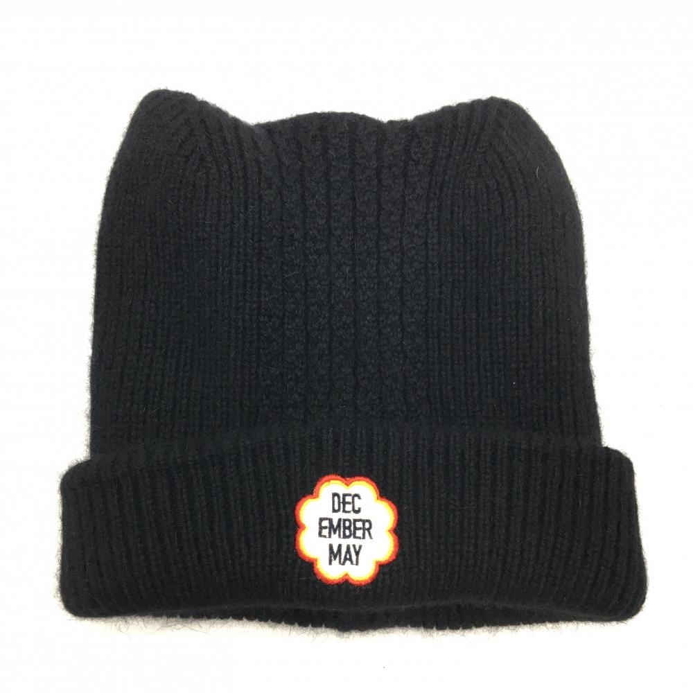 【超美品】ディセンバーメイ ニット帽 ネコ耳 黒 ウール混 レディース FREE ゴルフウェア DECEMBERMAY