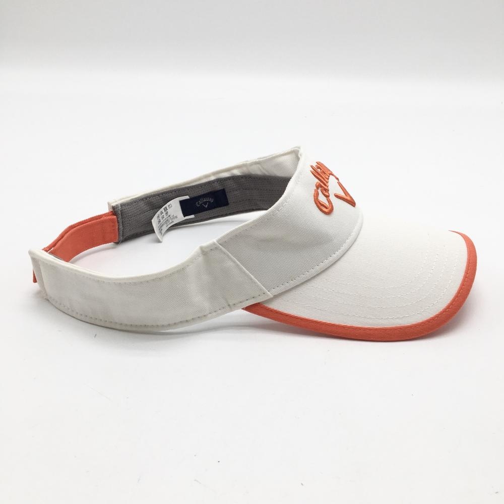 キャロウェイ サンバイザー 白×オレンジ ベア刺しゅう コットン100% レディース FR ゴルフウェア Callaway