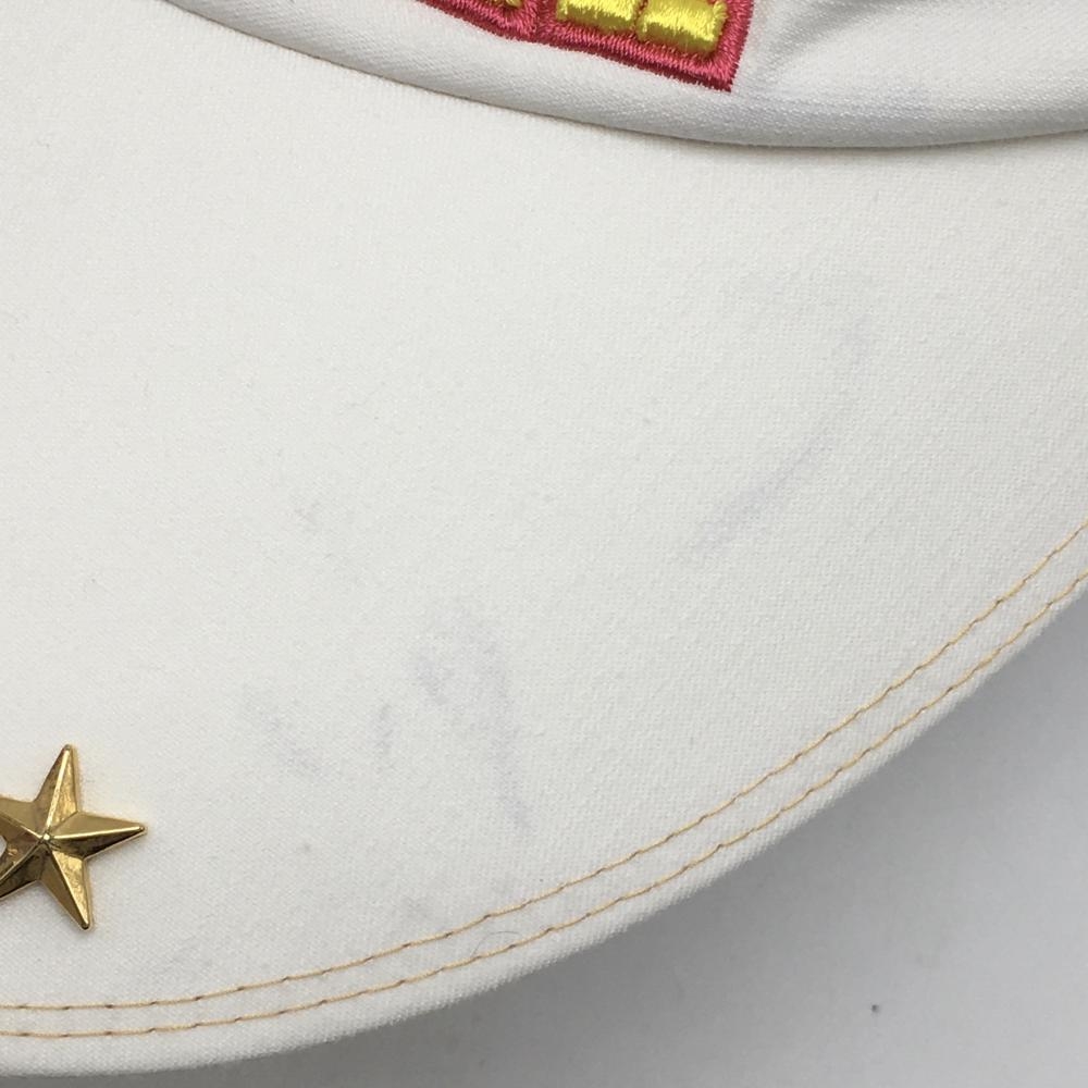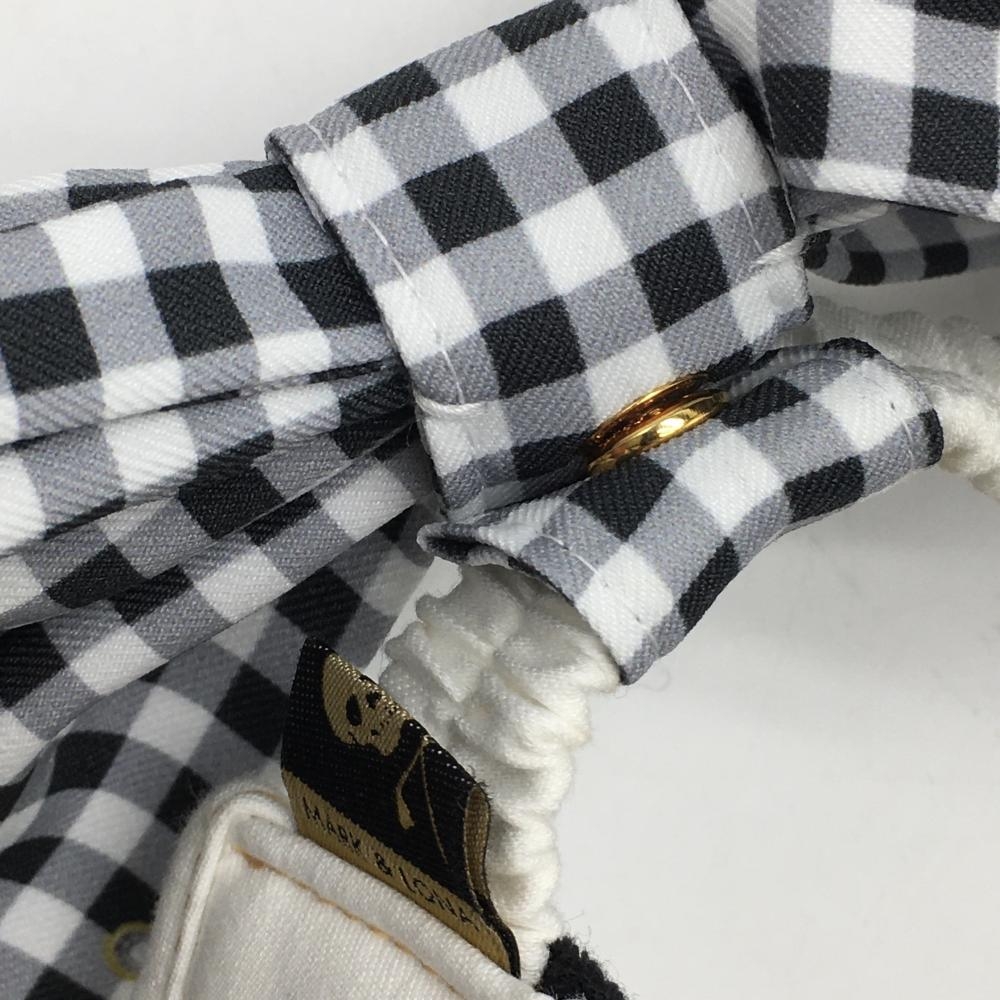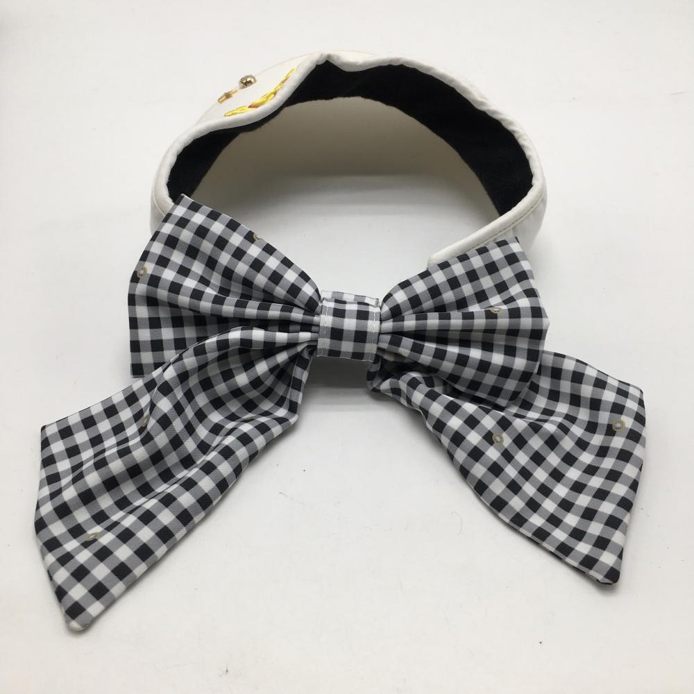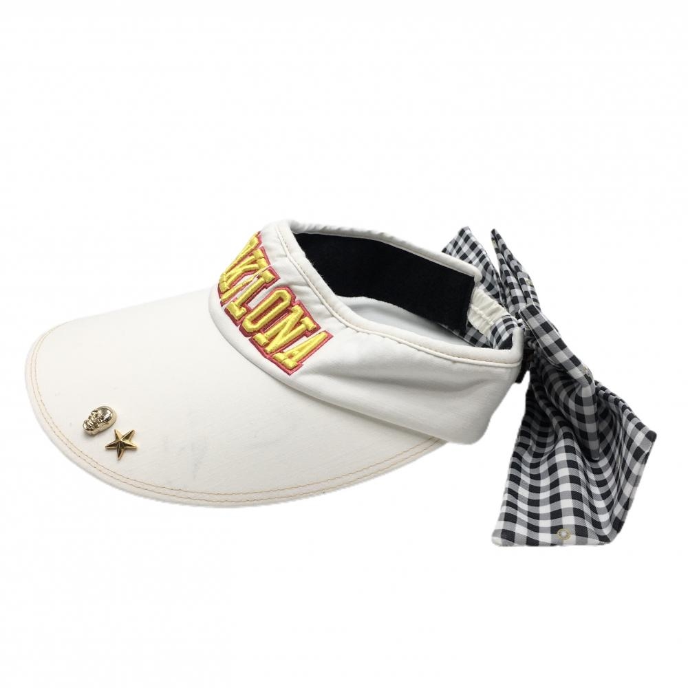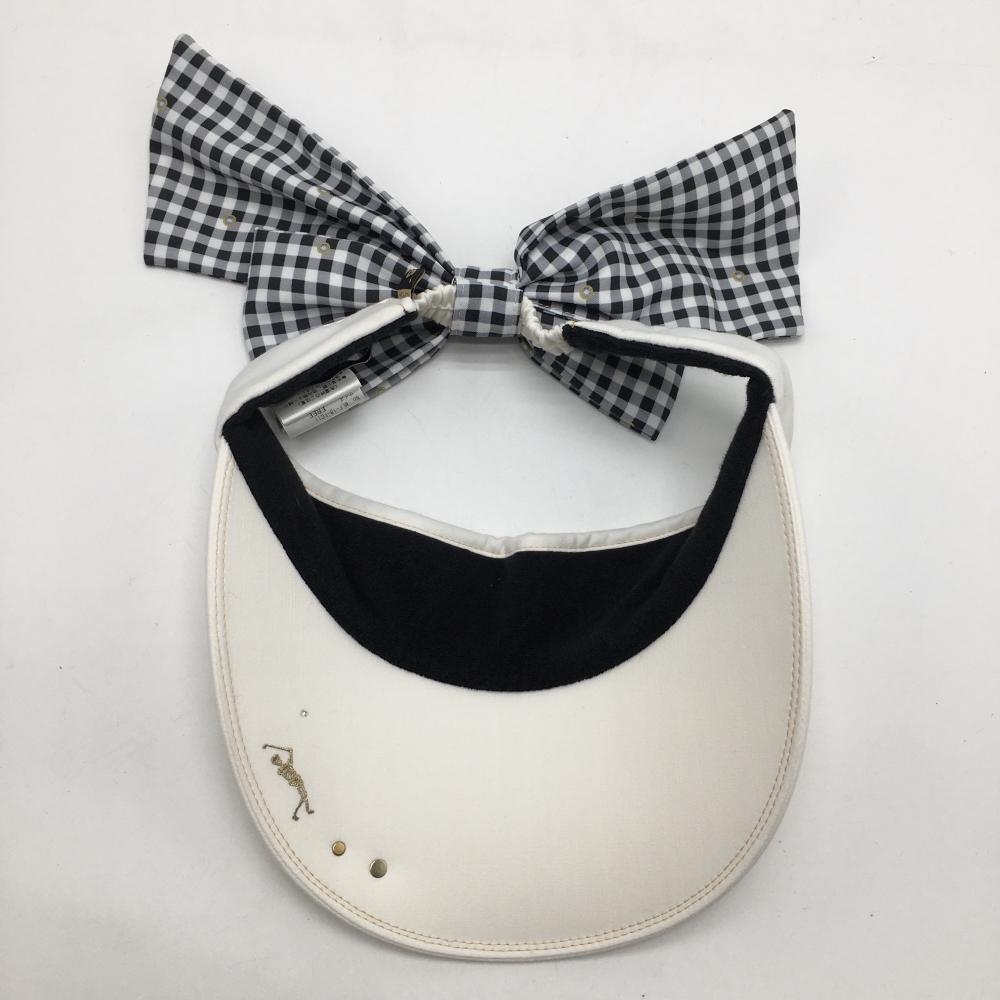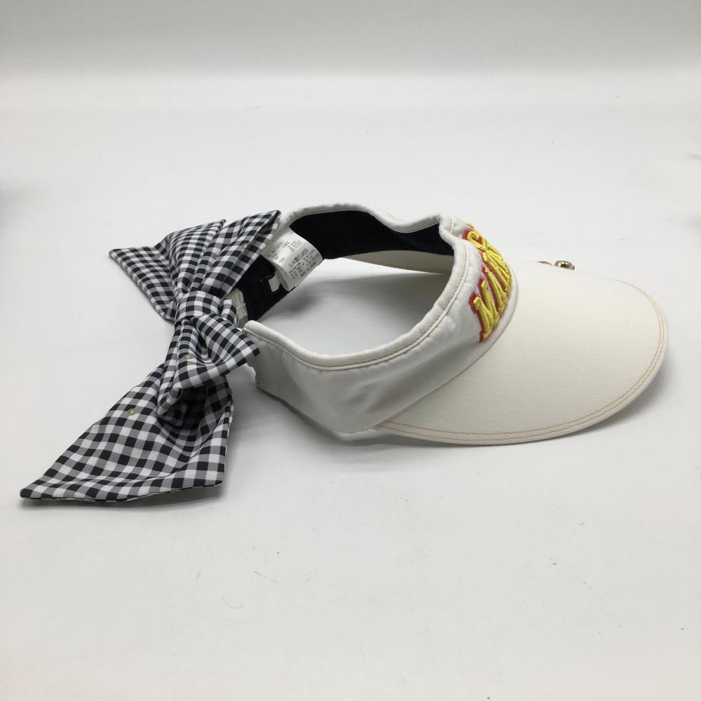 マークアンドロナ つば広サンバイザー 白×イエロー 一部ギンガムチェック リボン付 レディース FREE ゴルフウェア MARK&LONA