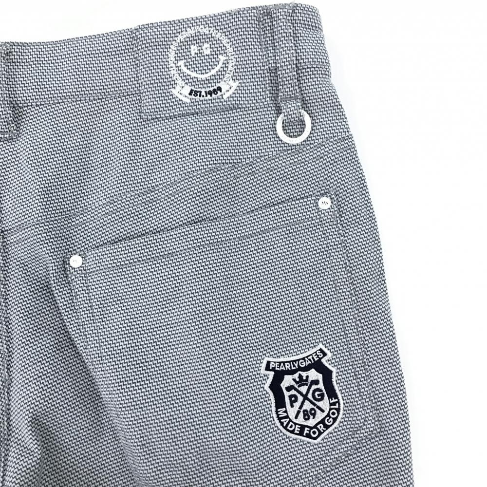 【超美品】パーリーゲイツ パンツ 白×グレー 細目ジグザグ斜めストライプ ストレッチ メンズ 4(M) ゴルフウェア PEARLY GATES