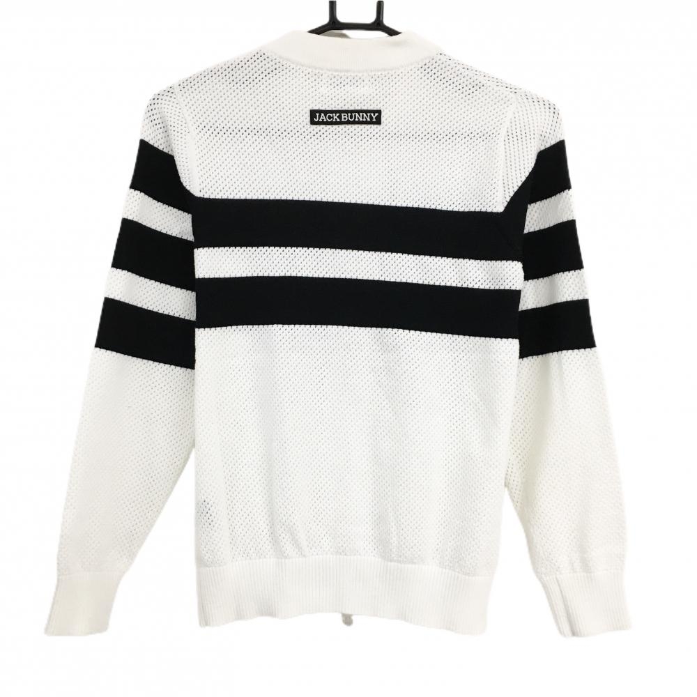 【美品】ジャックバニー ニットジャケット 白×黒 メッシュ調 胸ロゴ レディース 1(M) ゴルフウェア Jack Bunny