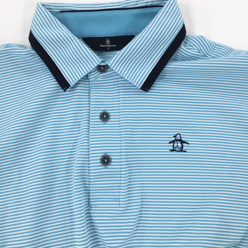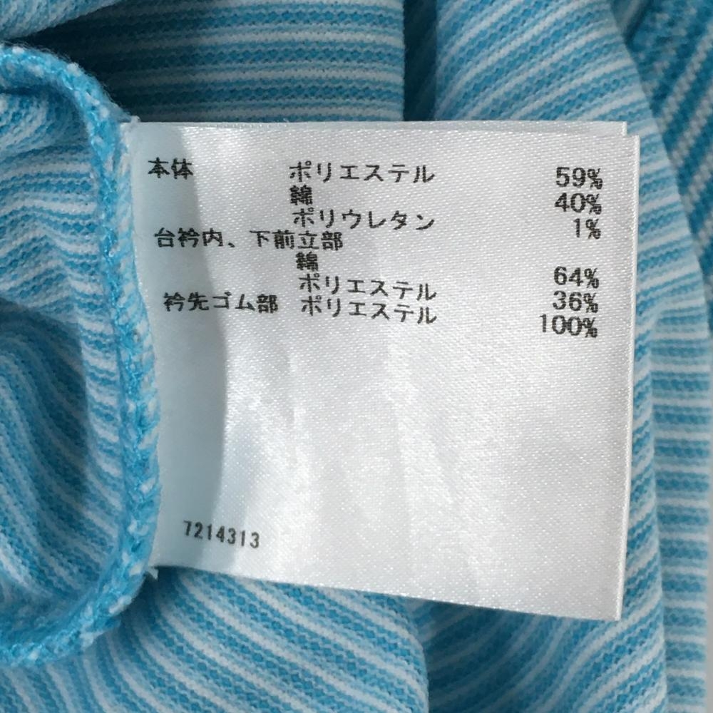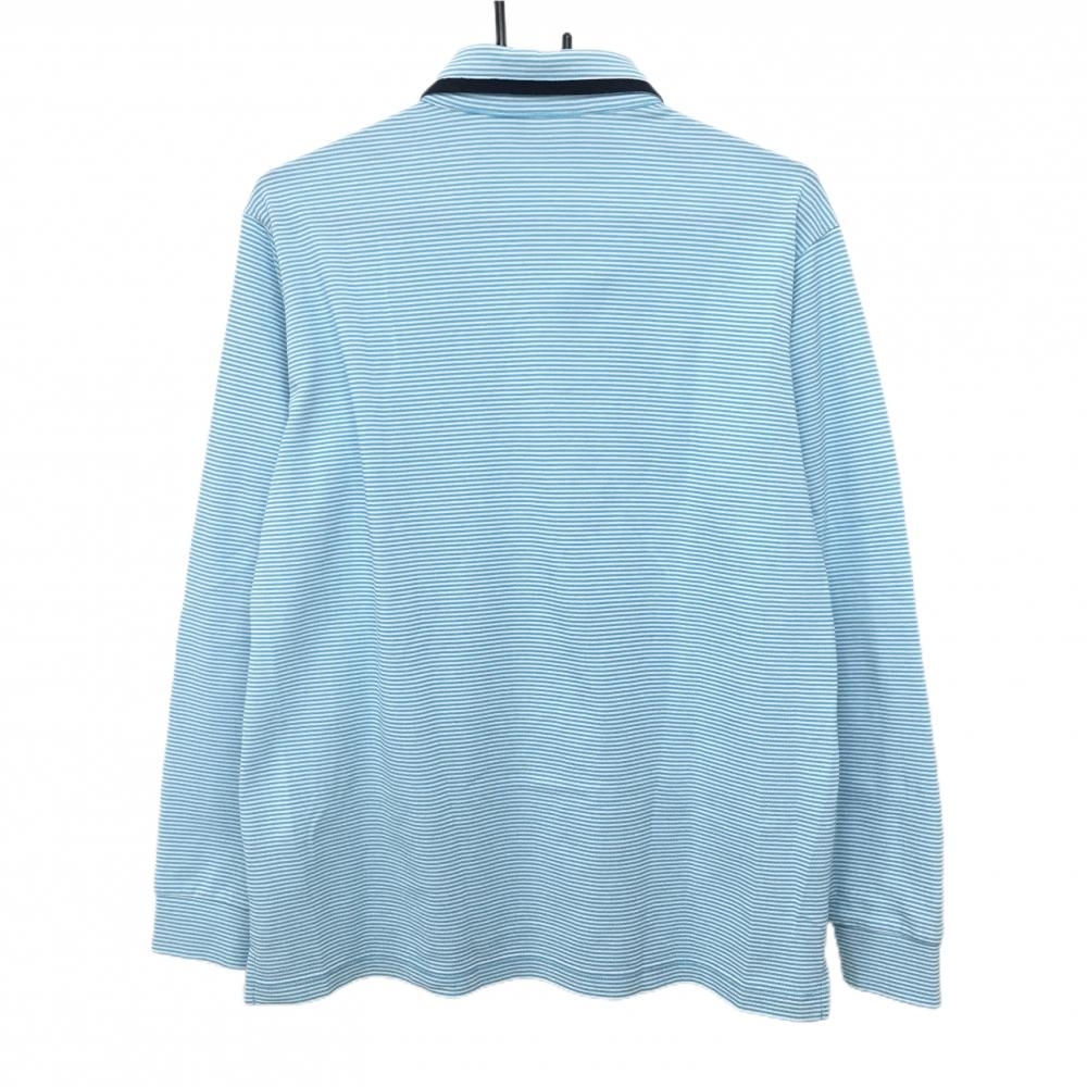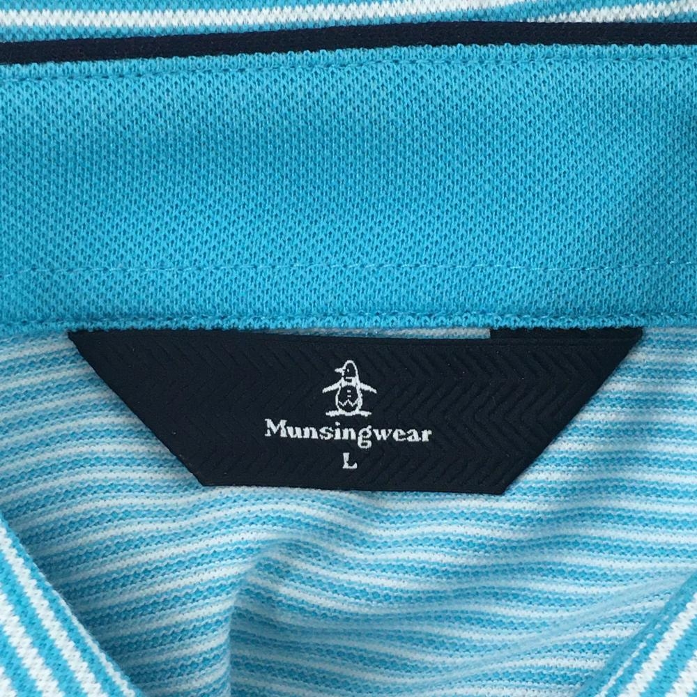【超美品】マンシングウェア 長袖ポロシャツ ライトブルー×白 ボーダー ロゴ刺しゅう メンズ L ゴルフウェア Munsingwear