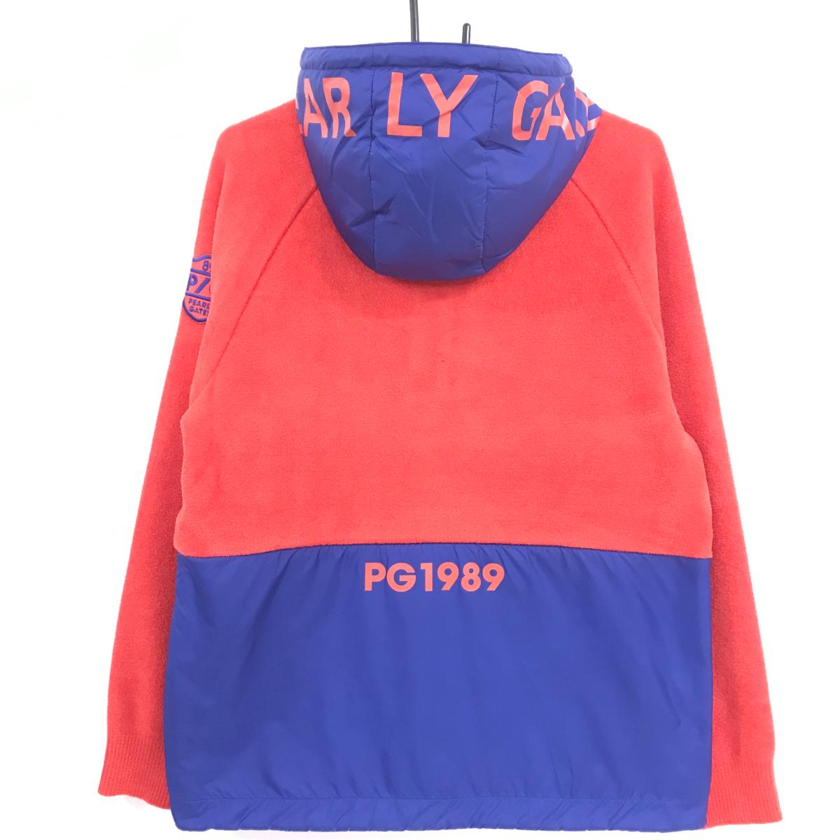 【新品】パーリーゲイツ フード付ブルゾン レッド×ブルー 起毛 切替 ハーフジップ メンズ 6(XL) ゴルフウェア PEARLY GATES