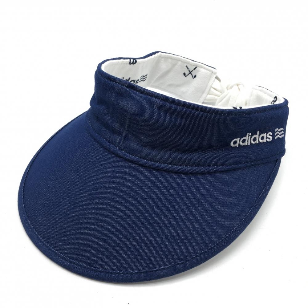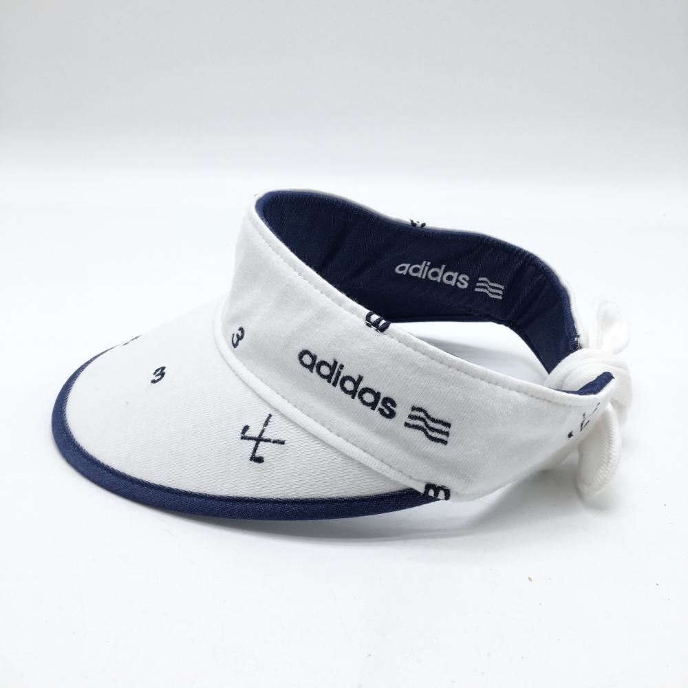 アディダス リバーシブルサンバイザー 白×ネイビー ロゴ刺しゅう ゴルフウェア adidas