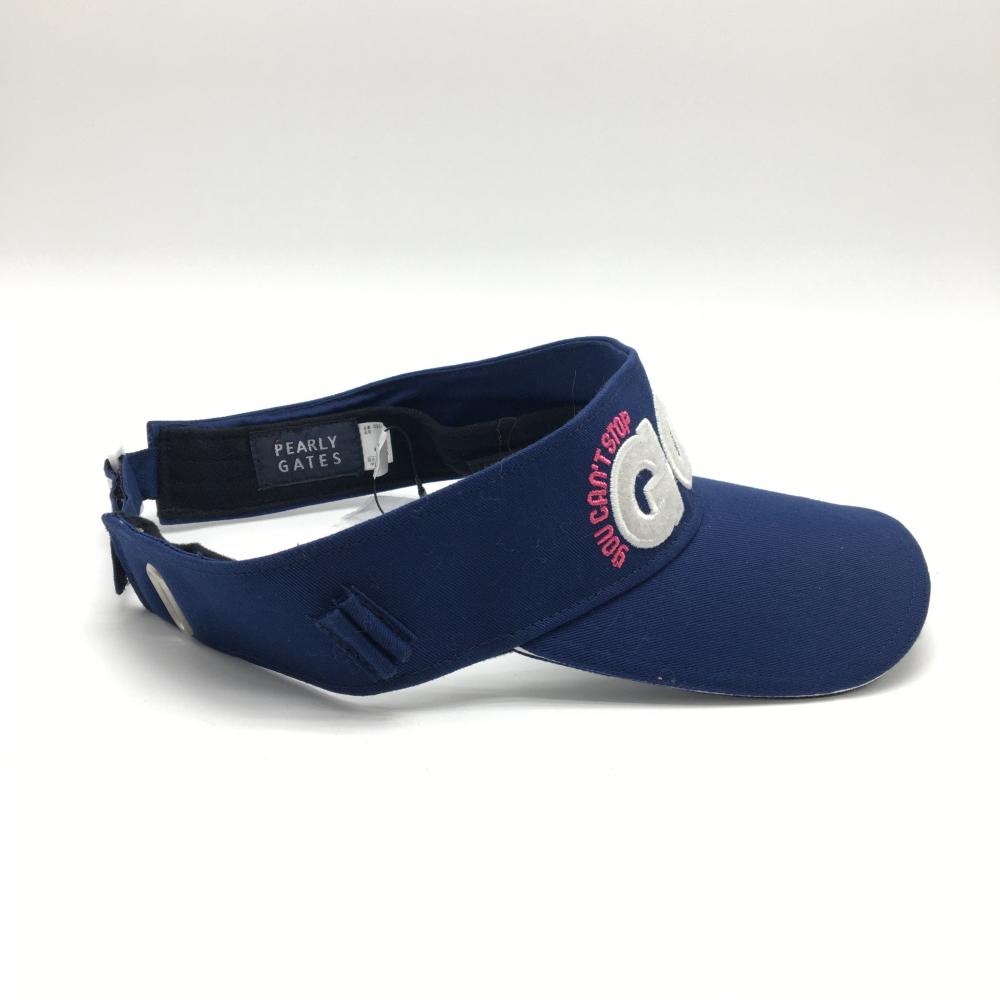 【新品】パーリーゲイツ サンバイザー ネイビー×白 ニコちゃん着脱可 汗取りパッド FR ゴルフウェア PEARLY GATES