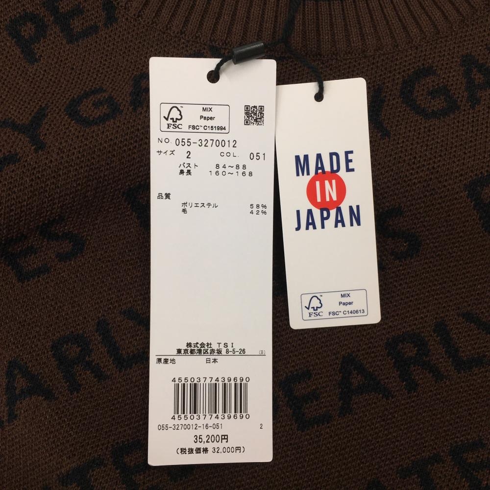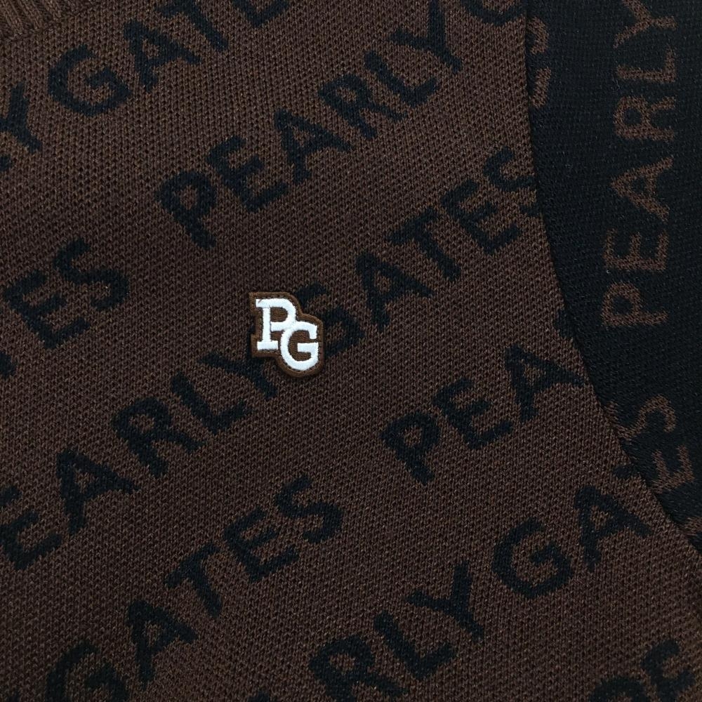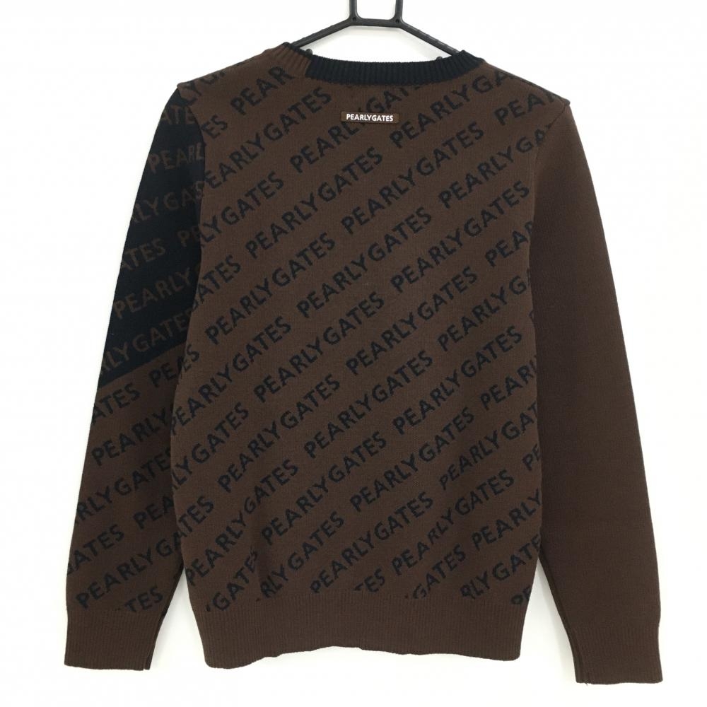 【新品】パーリーゲイツ セーター ダークブラウン×黒 英字ロゴ柄 胸ロゴ レディース 2(L) ゴルフウェア 2023年モデル PEARLY GATES