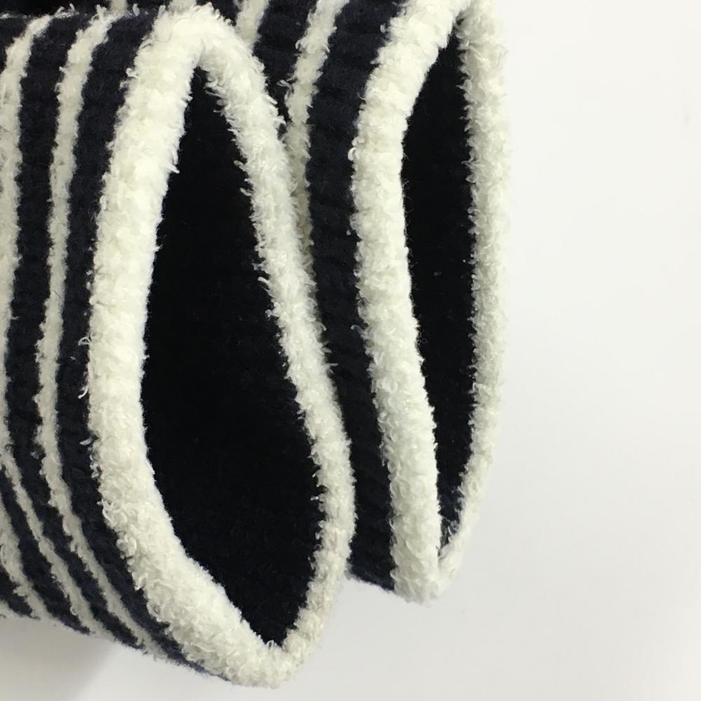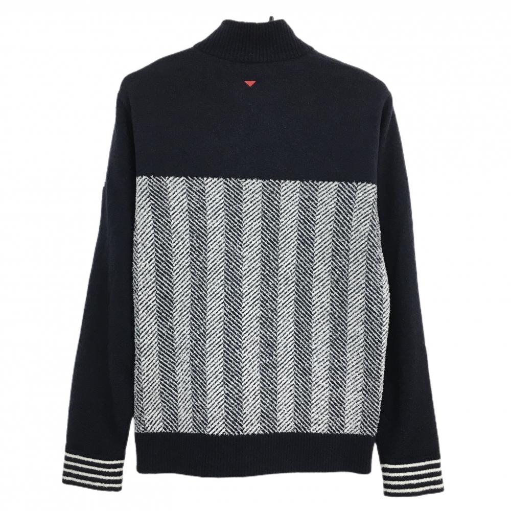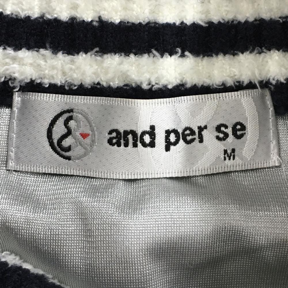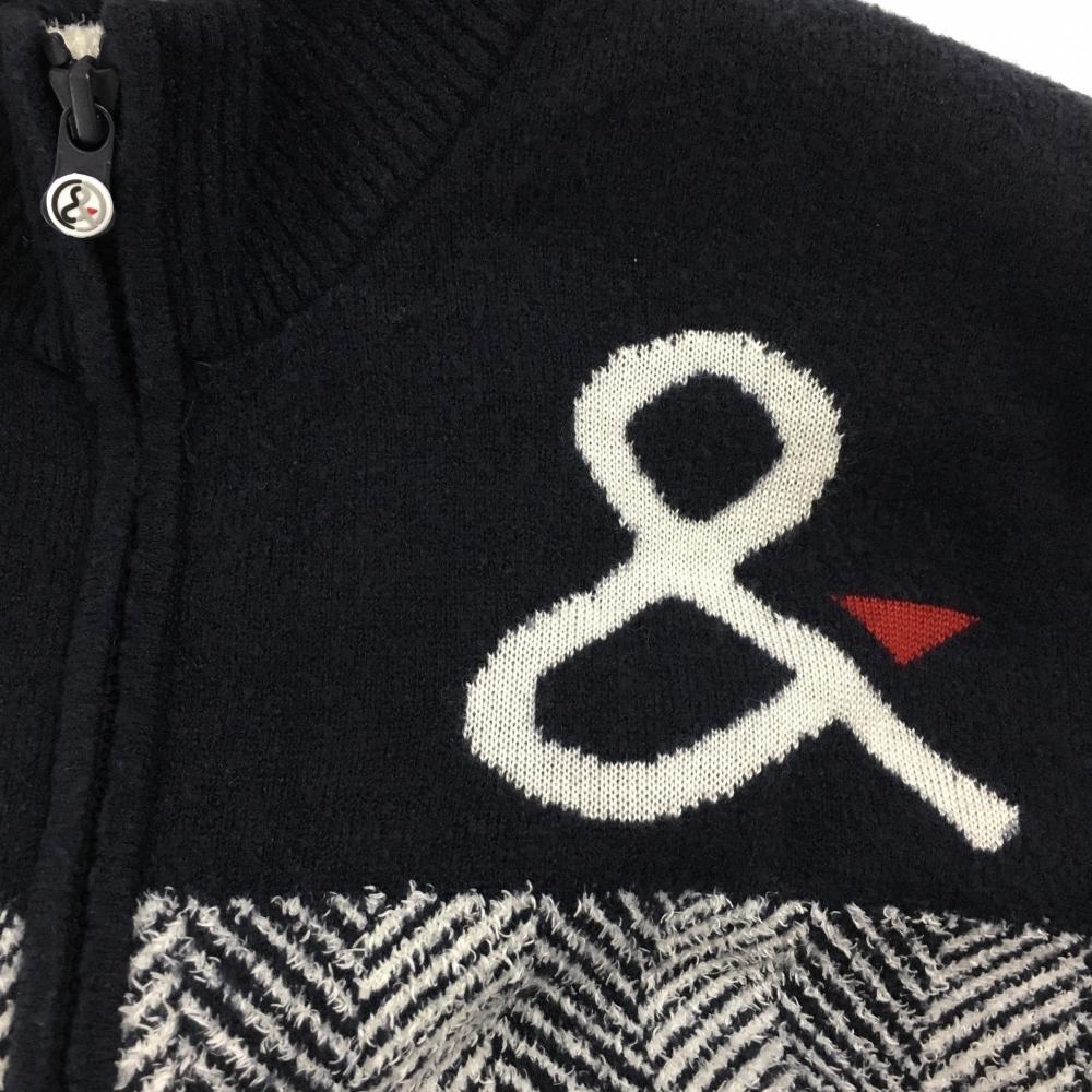 【美品】アンパスィ ニットジャケット ネイビー×白 身頃ヘリンボーン 裏地付き ウール混 レディース M ゴルフウェア and per se