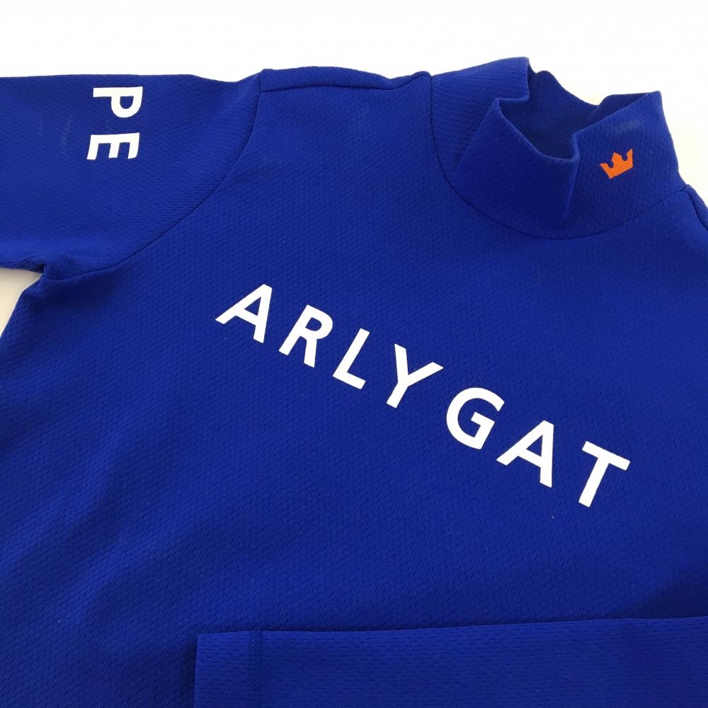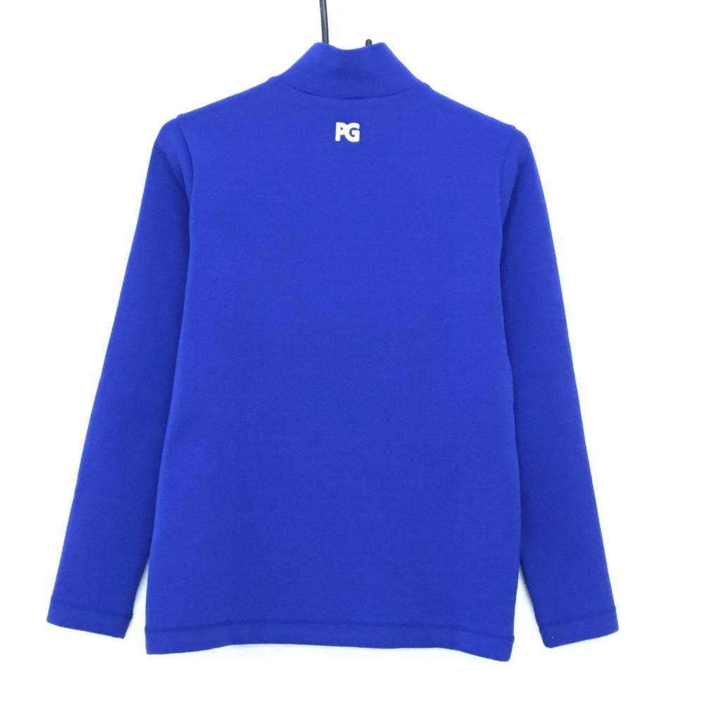 パーリーゲイツ 長袖ハイネックシャツ ブルー×白 フロントロゴ 厚手 レディース 2(L) ゴルフウェア PEARLY GATES