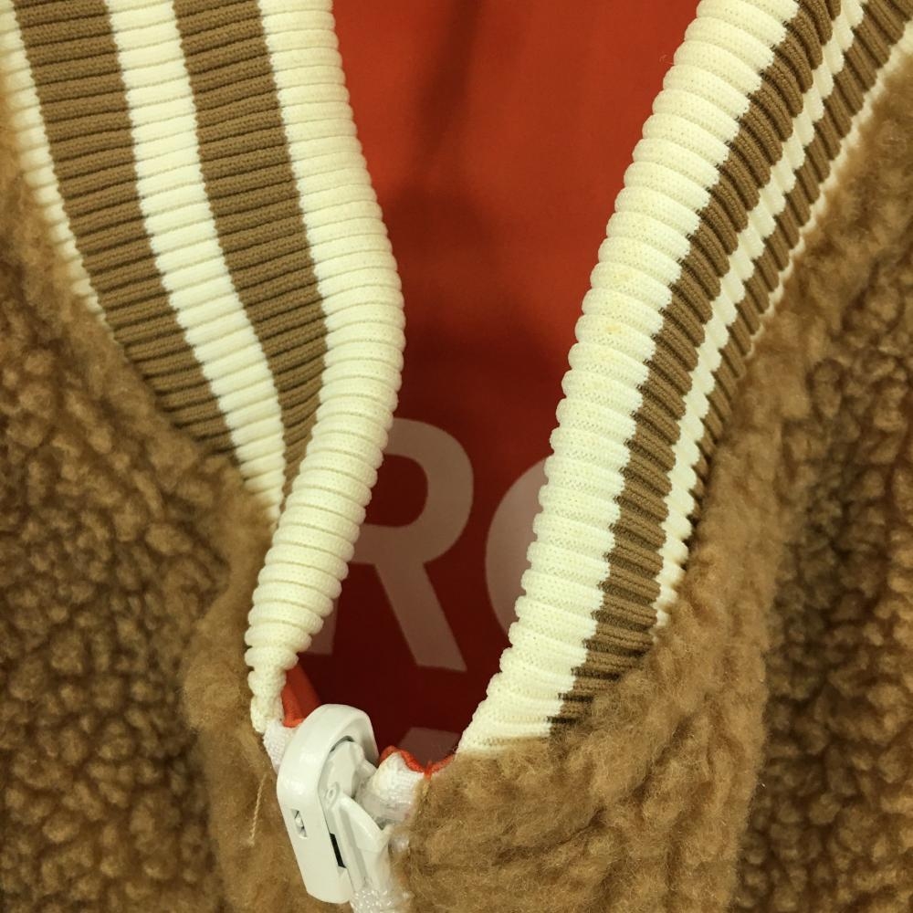 ピーダブリュサーキュラス リバーシブブルボアブルゾン ブラウン×白 裏オレンジ リブボーダー レディース M ゴルフウェア PW CIRCULUS