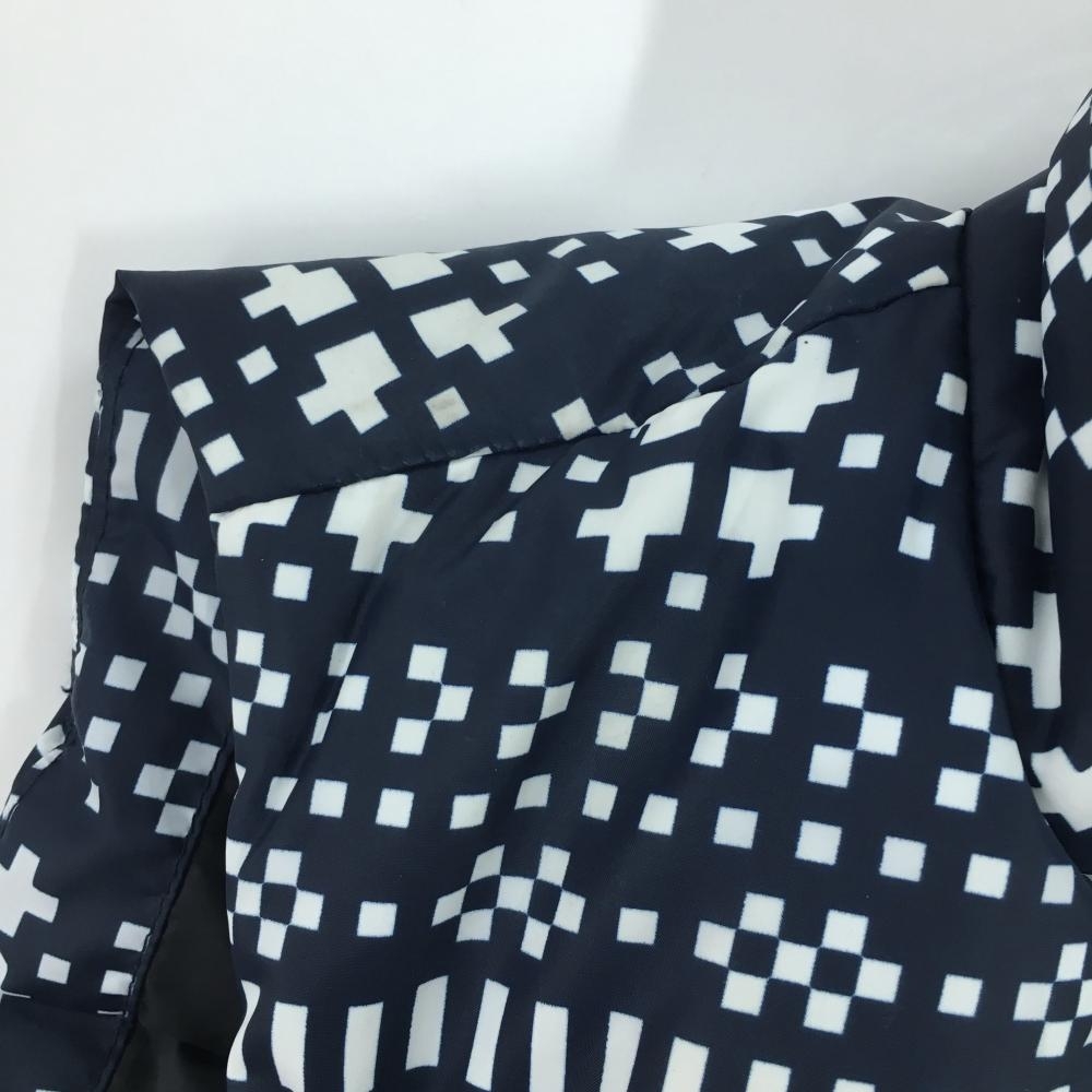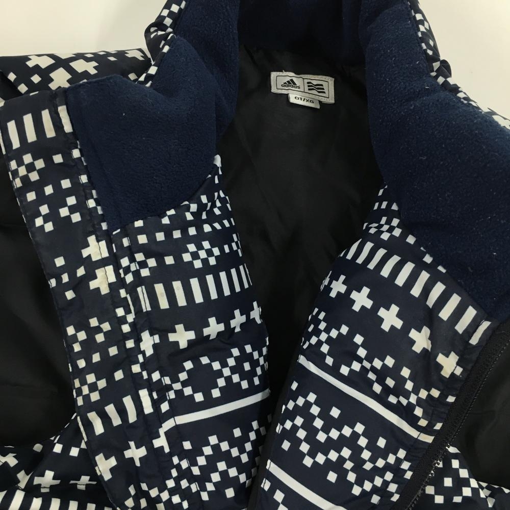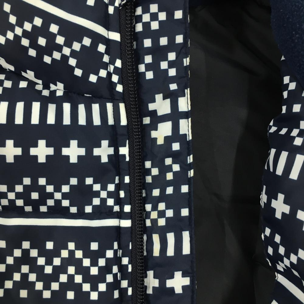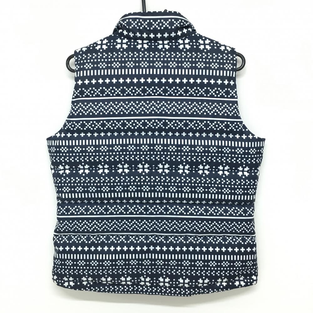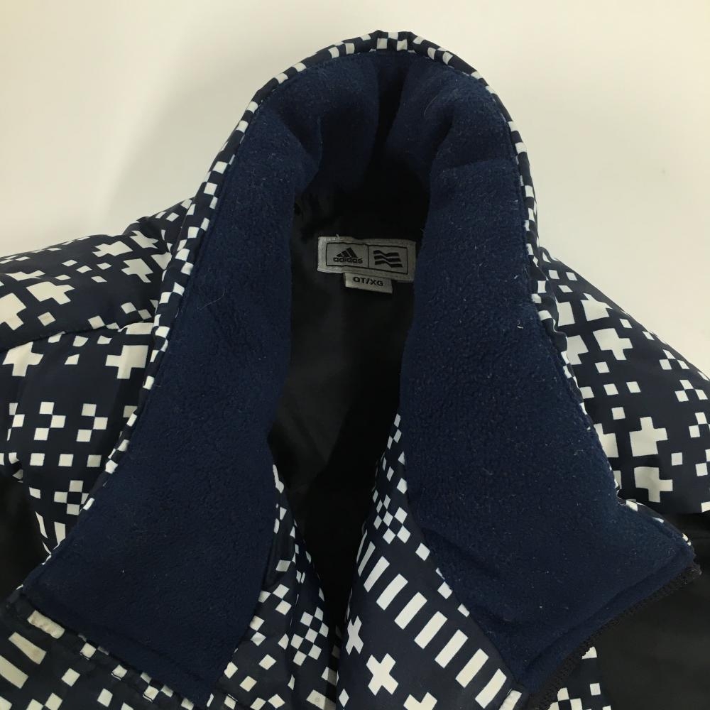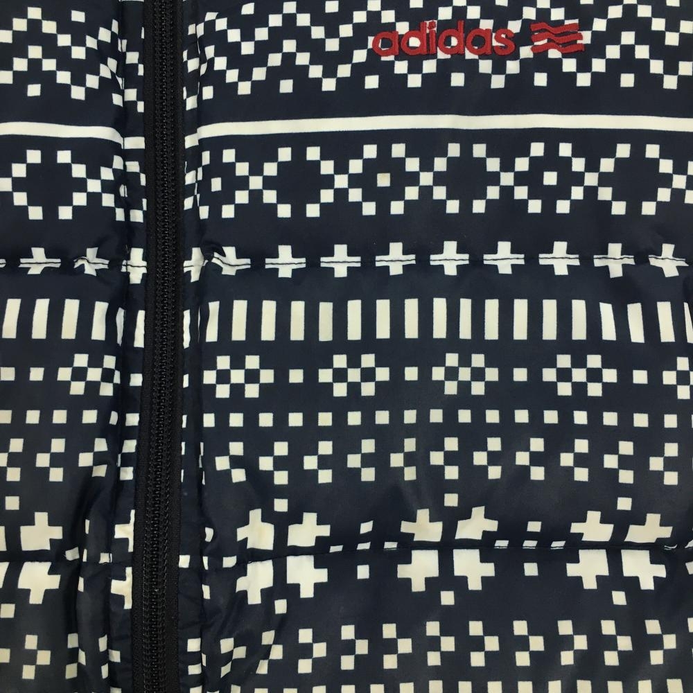 アディダス ダウンベスト ネイビー×白 総柄 ネック内側起毛 レディース OT/XG(XL) ゴルフウェア adidas