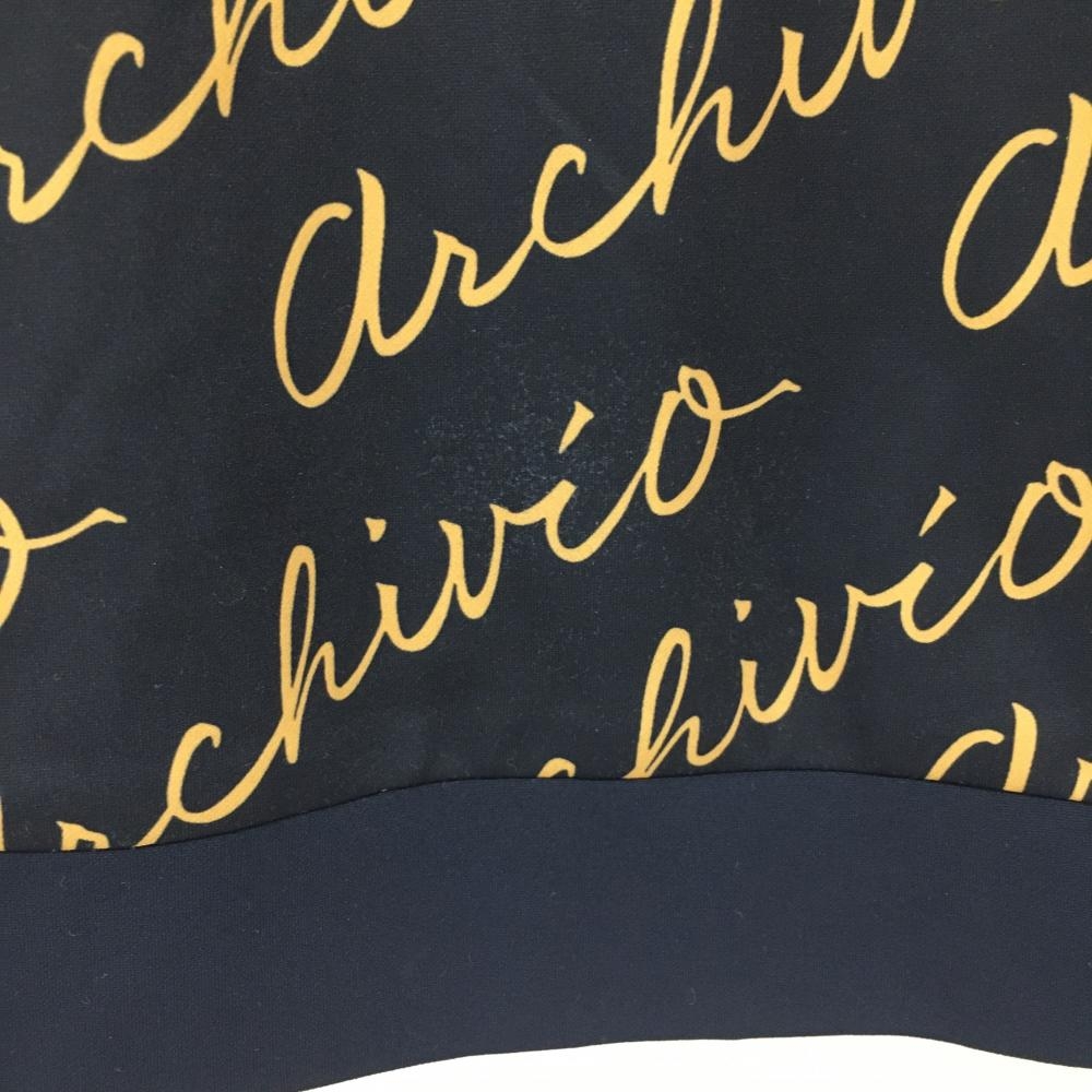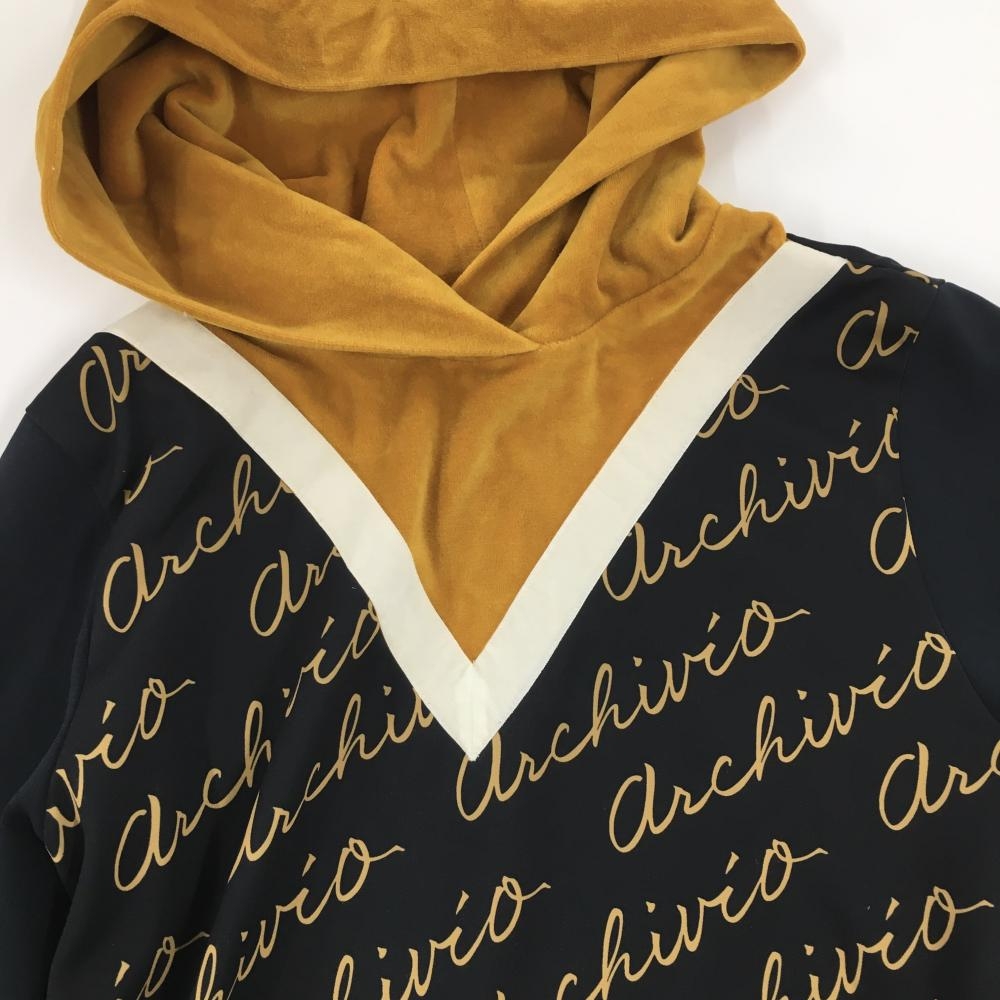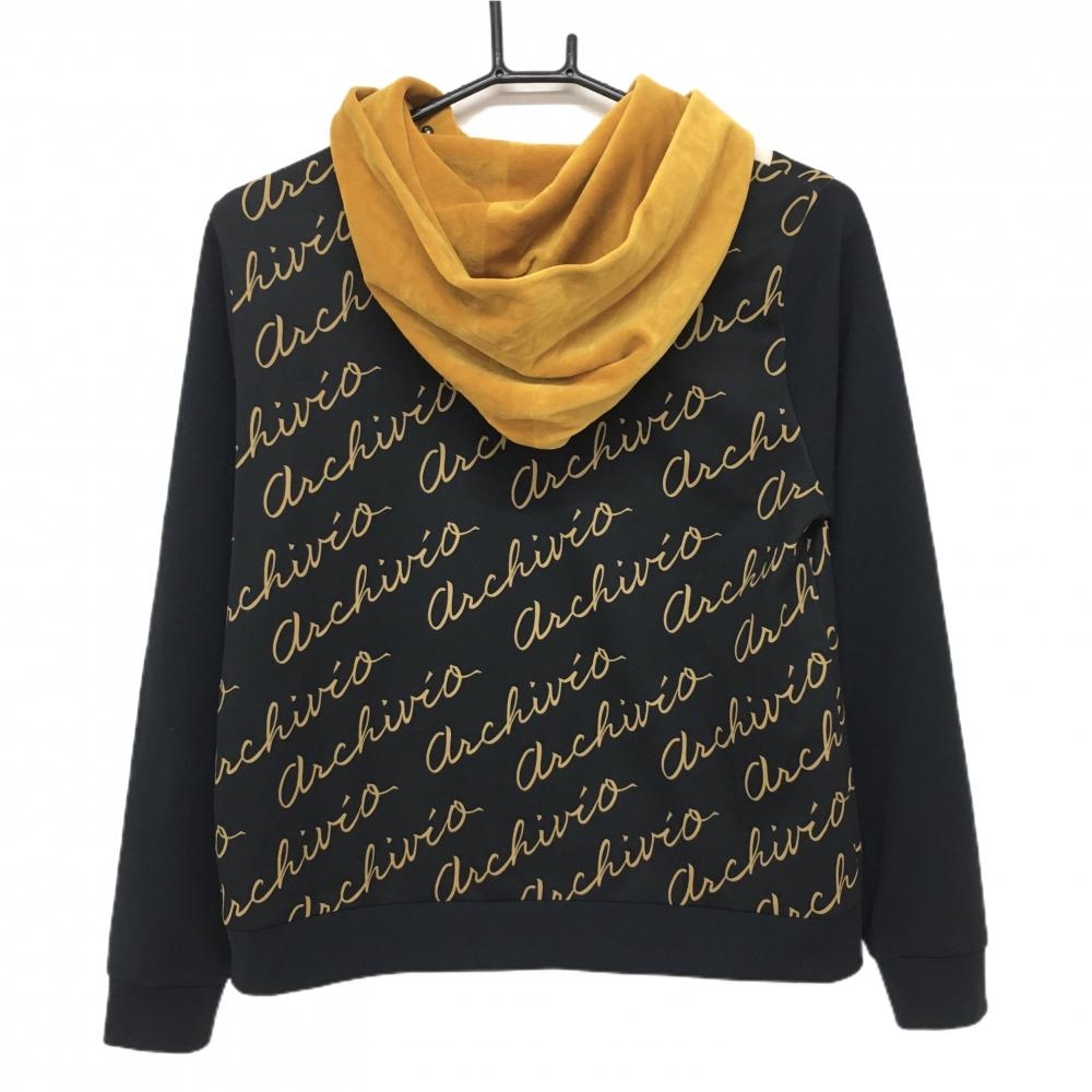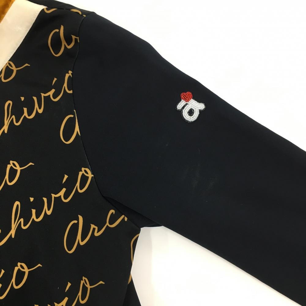 アルチビオ フード付長袖シャツ 黒×イエローブラウン 身頃ロゴ総柄 フード起毛 レディース 38(M) ゴルフウェア archivio