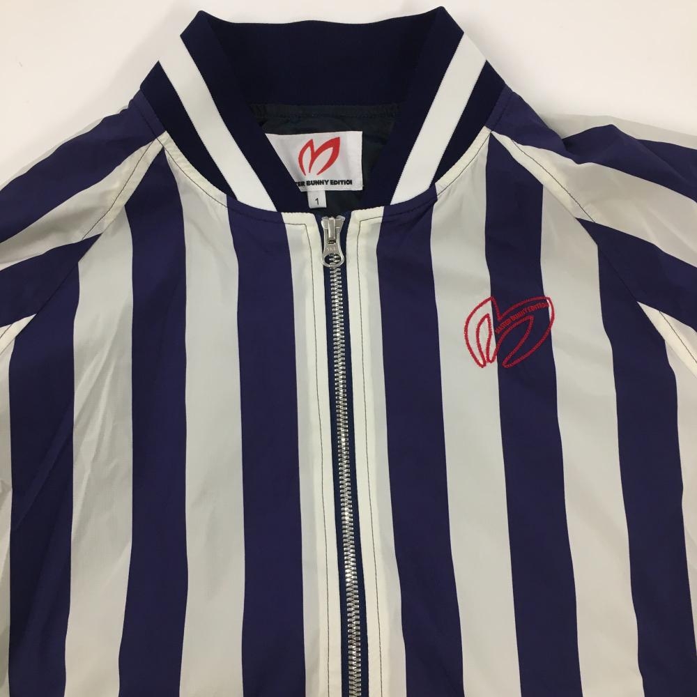 【美品】マスターバニー ナイロンジャケット パープル×白 ストライプ 裏地付き レディース 1(M) ゴルフウェア MASTER BUNNY EDITION