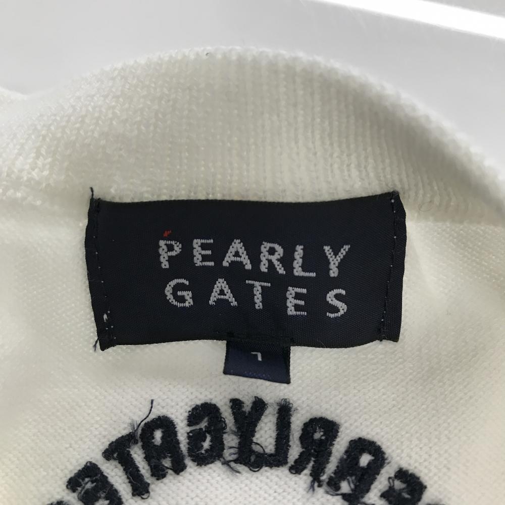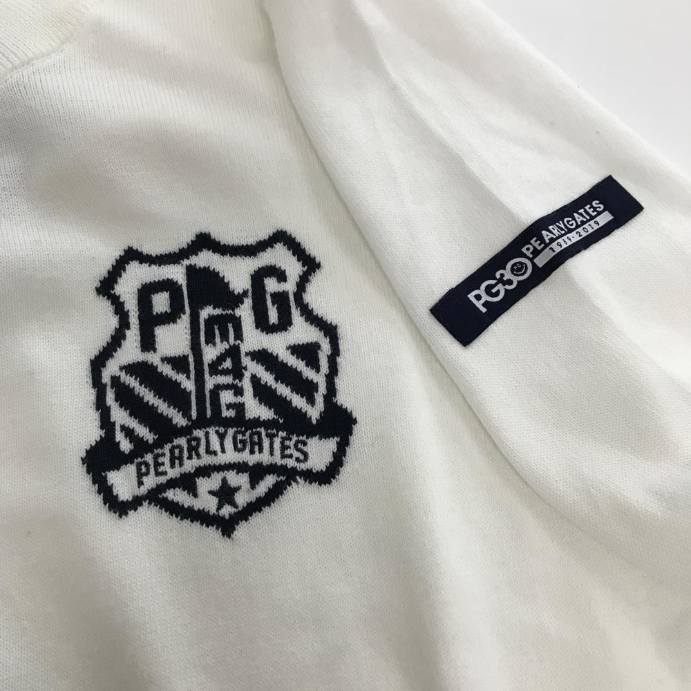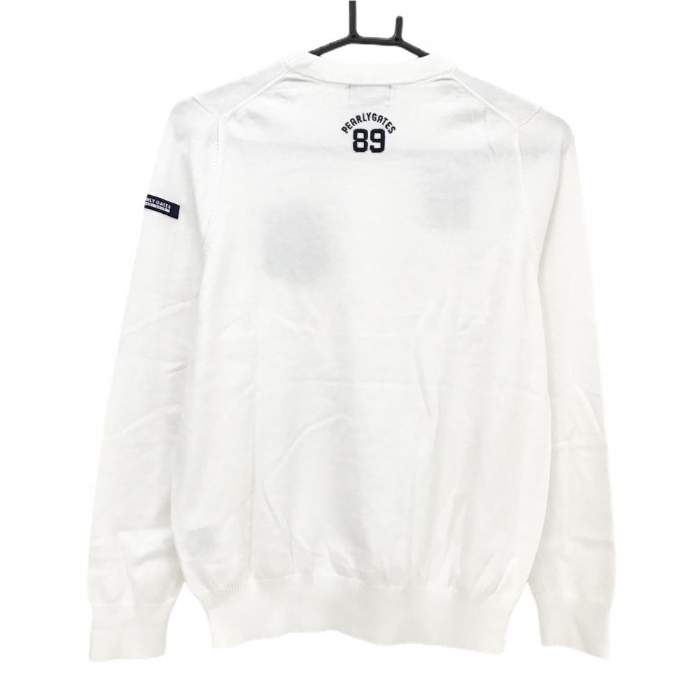 パーリーゲイツ セーター 白×ネイビー 胸ロゴ ニット コットン100% レディース 1(M) ゴルフウェア PEARLY GATES