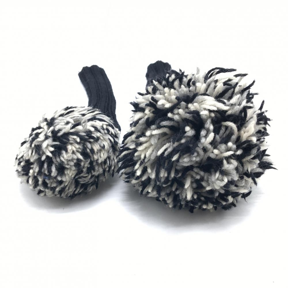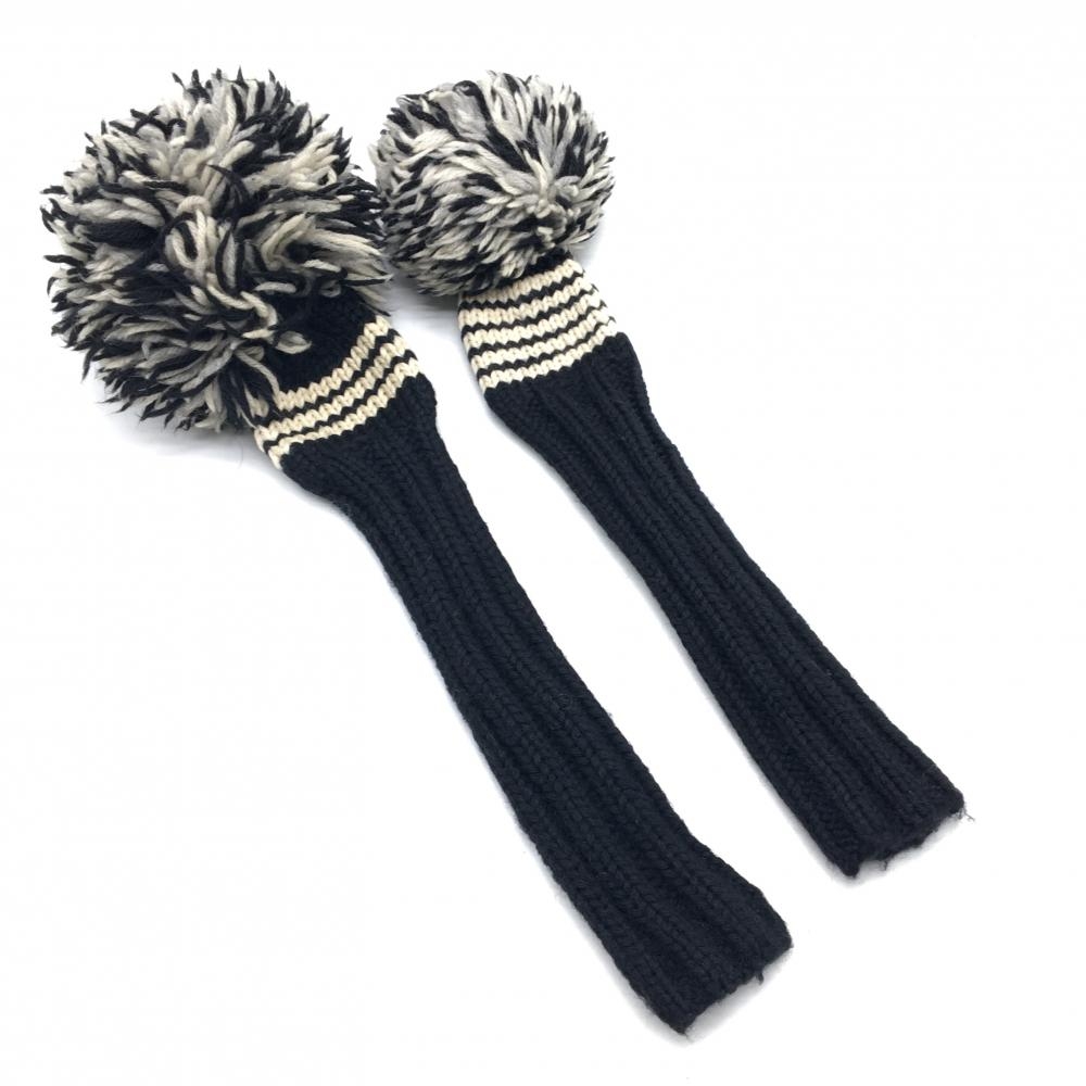 【美品】ジャンクレイグ ヘッドカバー2点セット(FW UT) 黒×白 ニット ポンポン付ゴルフ JAN CRAIG