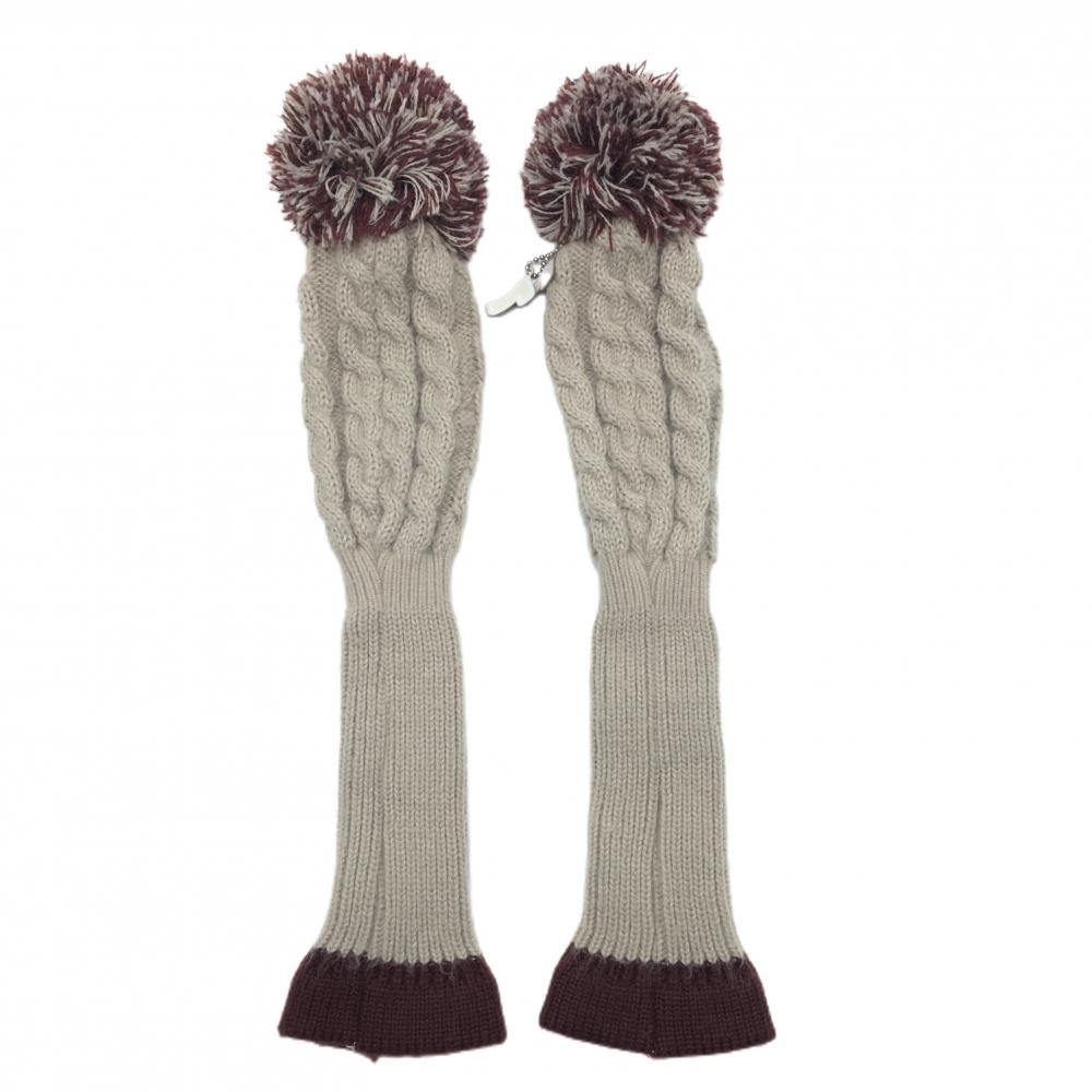 キャロウェイ ニットヘッドカバー2点セット(FW) グレージュ×ブラウン ボンボン付きゴルフ Callaway