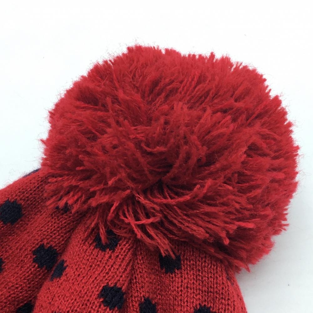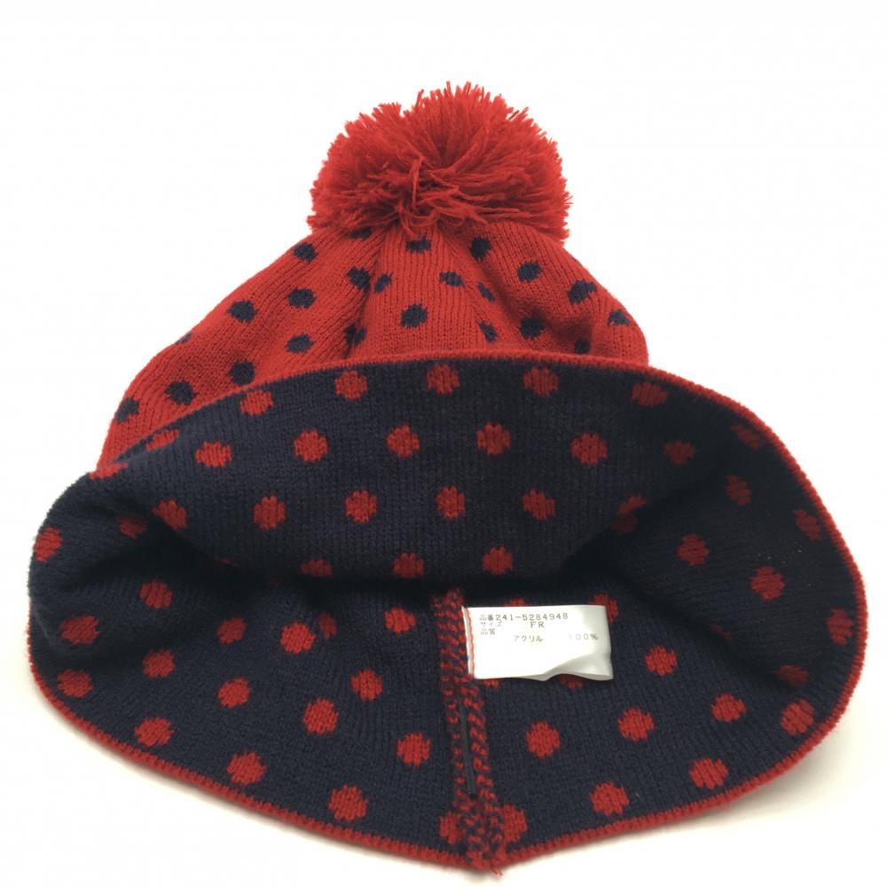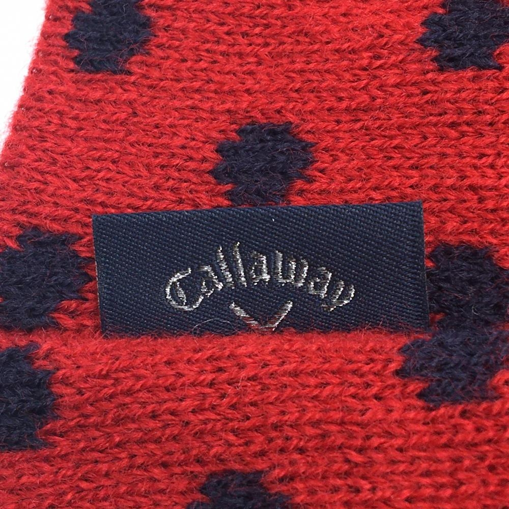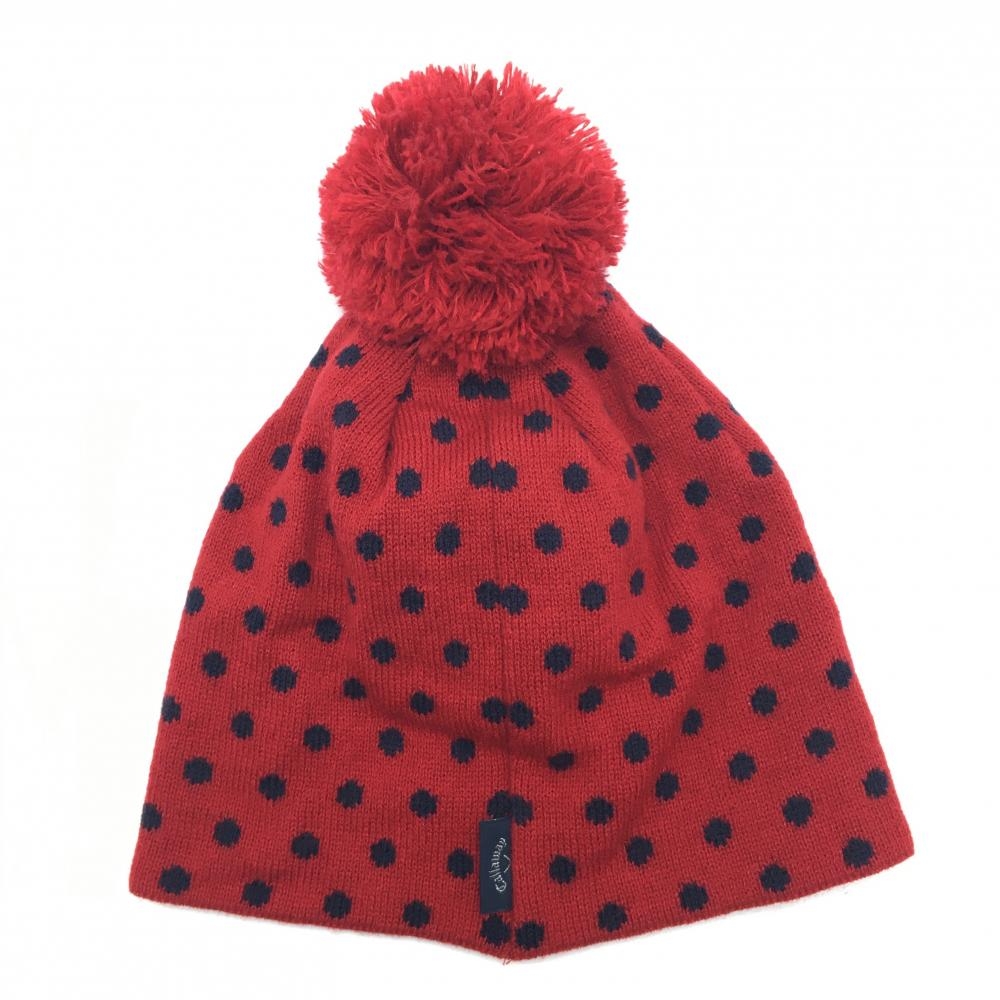 【美品】キャロウェイ ニット帽 レッド×ネイビー ドット柄 ボンボン付 FR ゴルフウェア Callaway
