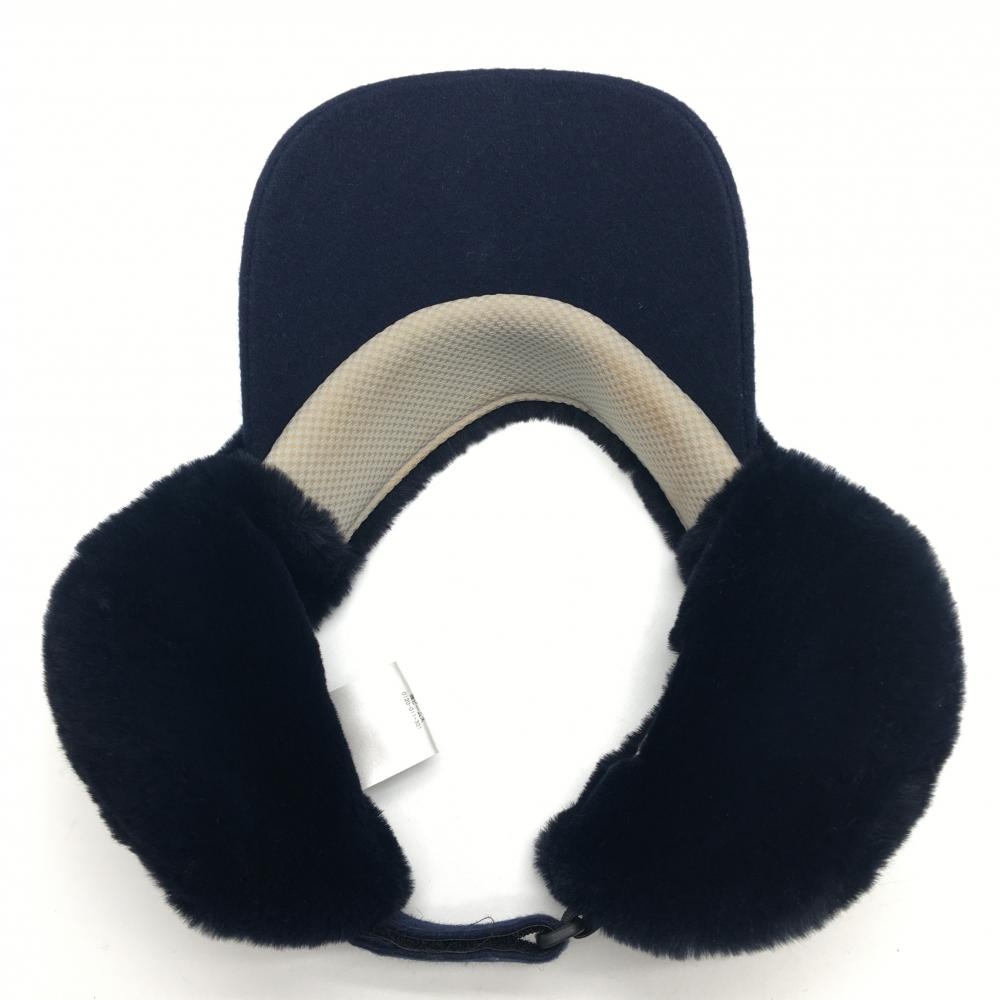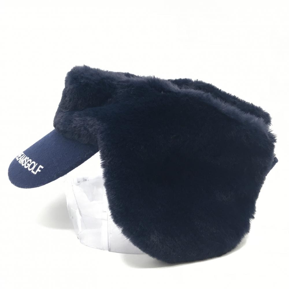ビームスゴルフ 耳当て付サンバイザー ネイビー 一部ファー 56-58cm ゴルフウェア BEAMS GOLF