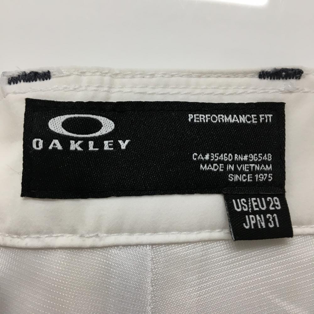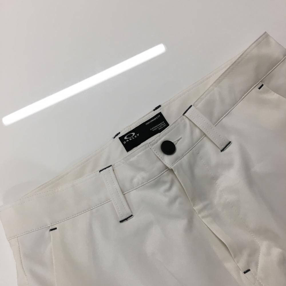 【美品】オークリー パンツ 白 ロゴダークグレー ティー装着可 メンズ 31 ゴルフウェア Oakley