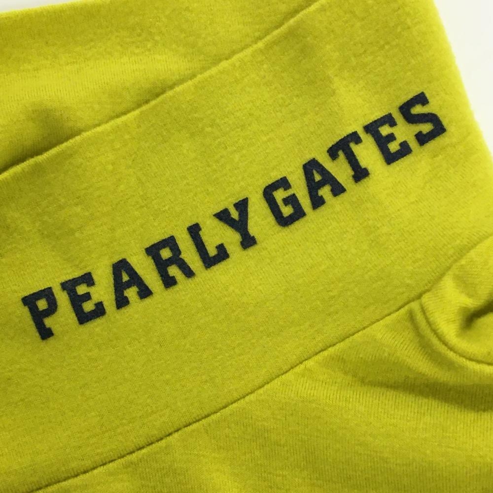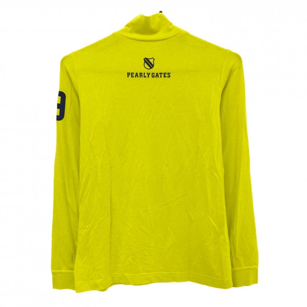 【美品】パーリーゲイツ 長袖ハイネックシャツ ライムイエロー×ネイビー ロゴプリント レディース 1(M) ゴルフウェア PEARLY GATES